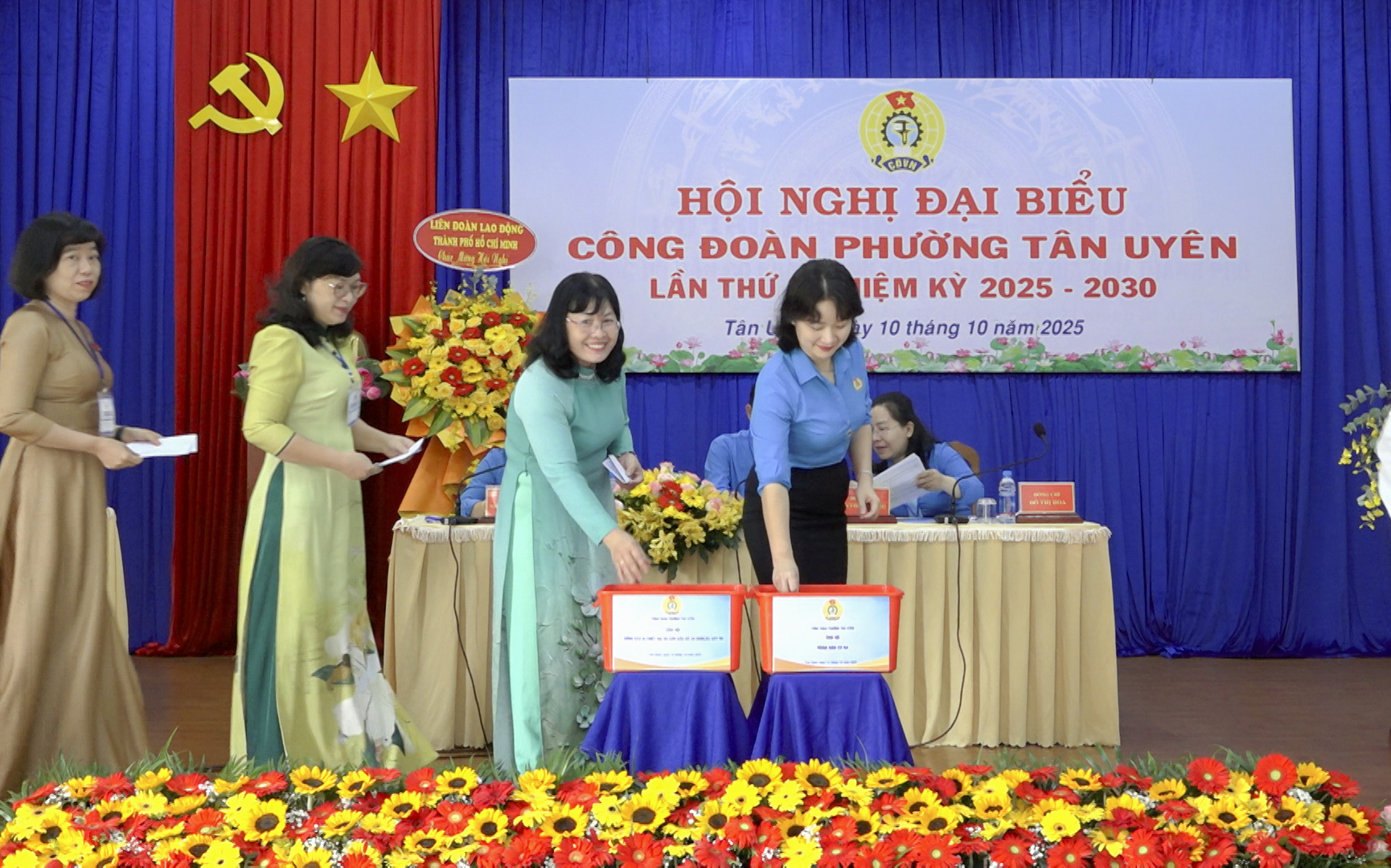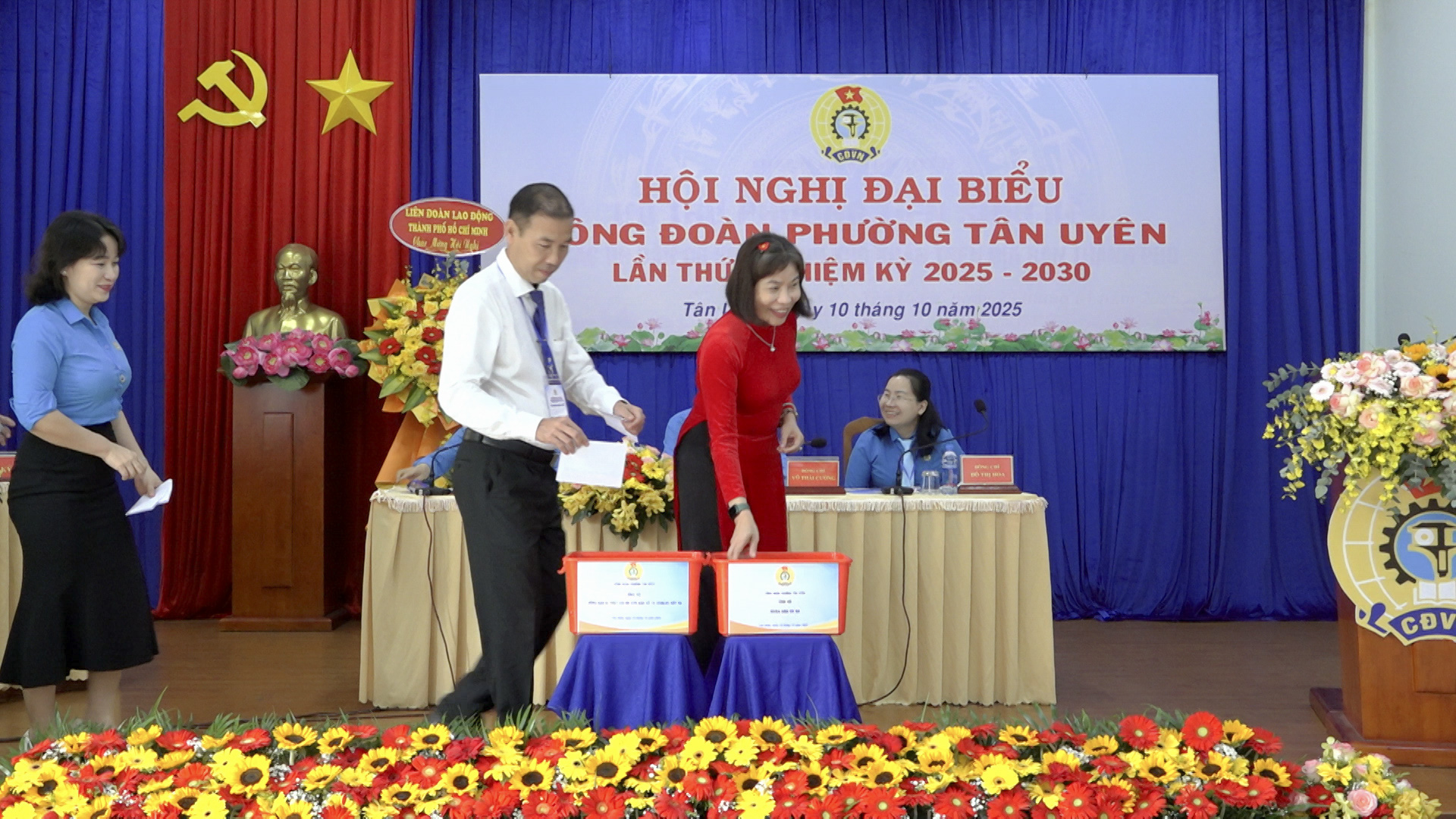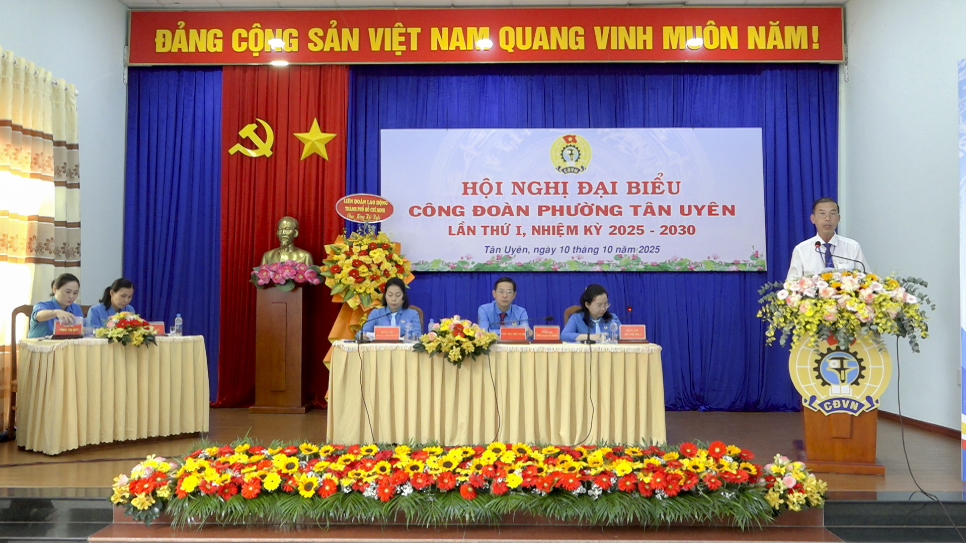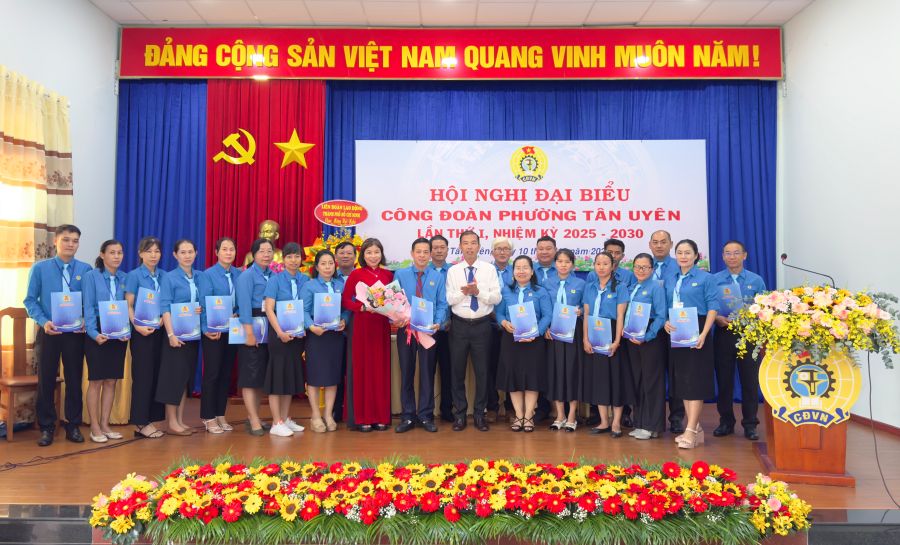Chiều ngày 10/10, Công đoàn phường Tân Uyên (TP.Hồ Chí Minh) long trọng tổ chức Hội nghị Đại biểu Công đoàn phường lần thứ I, nhiệm kỳ 2025-2030. Đến dự hội nghị có đồng chí Mai Thanh Thảo, Ủy viên thường vụ LĐLĐ TP.Hồ Chí Minh; đồng chí Lưu Hữu Duyên, Phó Bí thư Thường trực Đảng ủy, Giám đốc Trung tâm Chính trị phường; đồng chí Nguyễn Ngọc Mai, UVTV Đảng ủy, Chủ tịch Ủy ban MTTQ Việt Nam phường; đồng chí Phan Thị Ngọc Lợi, UVTV Đảng ủy, Phó Chủ tịch HĐND phường; cùng dự có lãnh đạo các cơ quan tham mưu giúp việc Đảng ủy phường, ban, ngành, các tổ chức chính trị-xã hội phường. Đặc biệt sự có mặt của 100 đại biểu là những cán bộ Công đoàn tiêu biểu, đại diện cho hơn 27.000 đoàn viên công đoàn trên địa bàn phường.