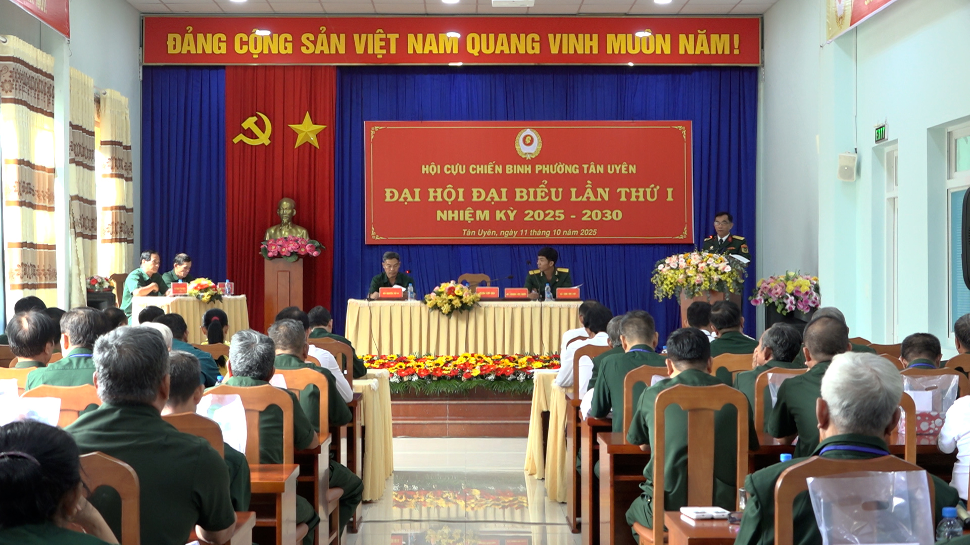 Sáng ngày 11/10, Hội Cựu chiến binh (CCB) phường Tân Uyên tổ chức Đại hội đại biểu lần thứ I, nhiệm kỳ 2025-2030. Đại hội có chủ đề “Phát huy bản chất truyền thống Bộ đội Cụ Hồ, tham gia xây dựng Hội CCB phường Tân Uyên phát triển theo hướng công nghiệp, đô thị văn minh, hiện đại, nghĩa tình”; phương châm “Đoàn kết-Kỷ cương-Gương mẫu-Đổi mới-Phát triển”. Đến dự đại hội có đồng chí Hà Huy Khánh, Ủy viên Ban Chấp hành, Giám đốc Quỹ hỗ trợ Cựu chiến binh nghèo Thành phố Hồ Chí Minh; đồng chí Lưu Hữu Duyên, Phó Bí thư Thường trực Đảng ủy, Giám đốc Trung tâm Chính trị phường; đồng chí Đặng Đình Trí, UVTV Đảng ủy, Phó Chủ tịch UBND phường; các đồng chí nguyên Chủ tịch, Phó Chủ tịch Hội CCB qua các thời kỳ; lãnh đạo các cơ quan, ban ngành đoàn thể của phường; cùng dự có 90 đại biểu đại diện cho 336 hội viên của các Chi hội trên địa bàn.