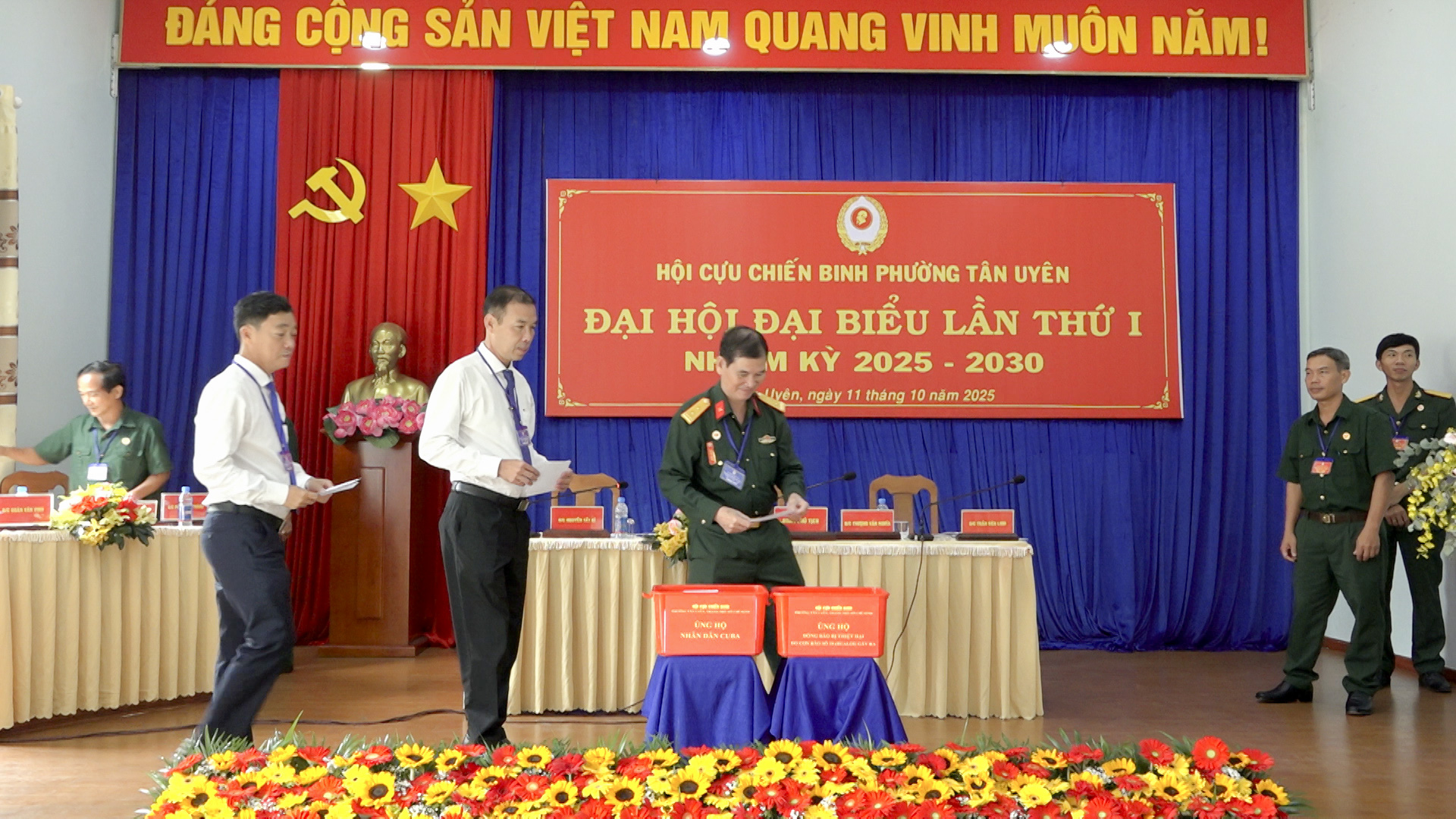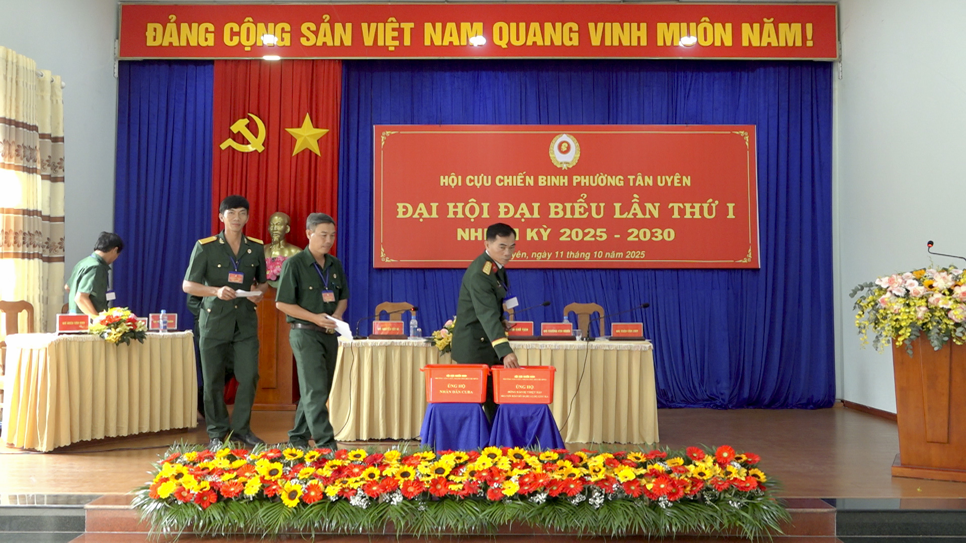 Đại hội cũng đã công bố quyết định của Hội CCB TP.Hồ Chí Minh về việc chỉ định Ban chấp hành, Ban thường vụ, Chủ tịch, Ban Kiểm tra, Trưởng ban Kiểm tra Hội CCB phường Tân Uyên, nhiệm kỳ 2025-030 gồm 20 đồng chí. Đồng chí Nguyễn Thanh Thoại được chỉ định giữ chức Chủ tịch Hội CCB phường Tân Uyên khóa I, nhiệm kỳ 2025-2030. Đại hội cũng công bố quyết định Đoàn đại biểu dự đại hội Hội CCB Thành phố lần thứ I, nhiệm kỳ 2025-2030 gồm 2 đại biểu chính thức và 1 đại biểu dự khuyết. Ban Chấp hành nhiệm kỳ mới phát biểu ra mắt Đại hội.