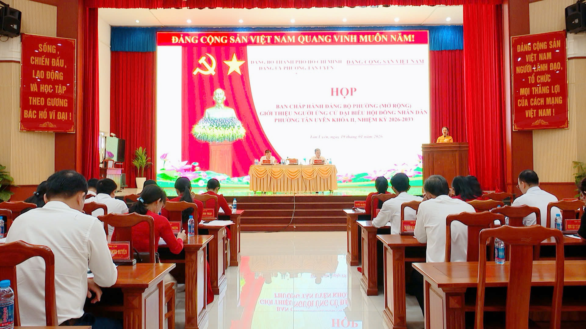 Sáng ngày 19/01, Đảng uỷ phường Tân Uyên tổ chức Hội nghị Ban Chấp hành Đảng bộ phường (mở rộng) giới thiệu người ứng cử đại biểu Hội đồng nhân dân phường khoá II, nhiệm kỳ 2026 - 2030.