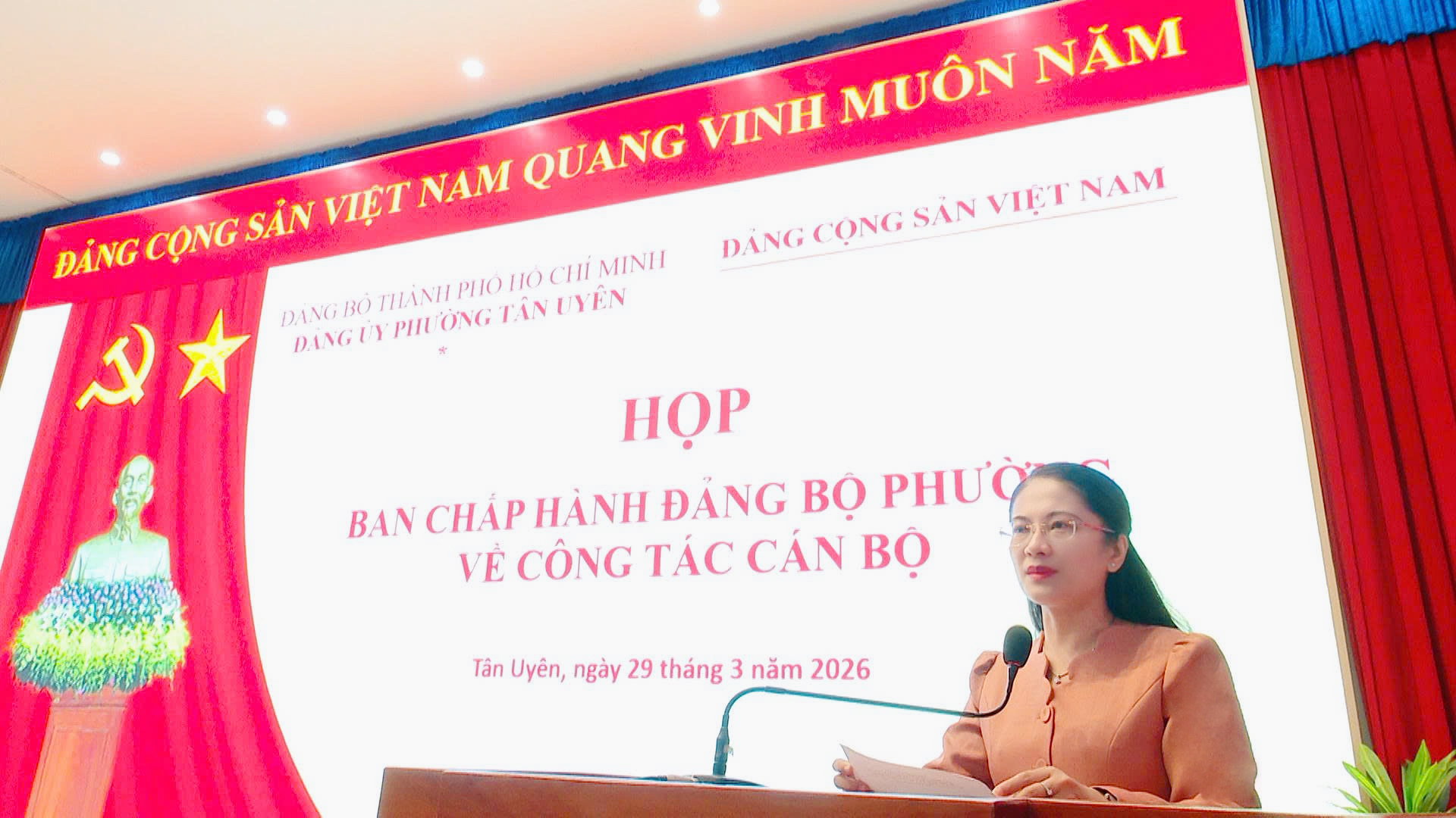 Sáng ngày 29/3, Ban Chấp hành Đảng bộ phường Tân Uyên tổ chức họp về công tác cán bộ để xem xét, ban hành Nghị quyết giới thiệu nhân sự ứng cử các chức danh lãnh đạo chủ chốt của Hội đồng nhân dân và Ủy ban nhân dân phường khóa II, nhiệm kỳ 2026 - 2031. Đồng chí Nguyễn Thị Tuyết Nhung, Bí thư Đảng uỷ, Chủ tịch Hội đồng nhân dân phường chủ trì cuộc họp.