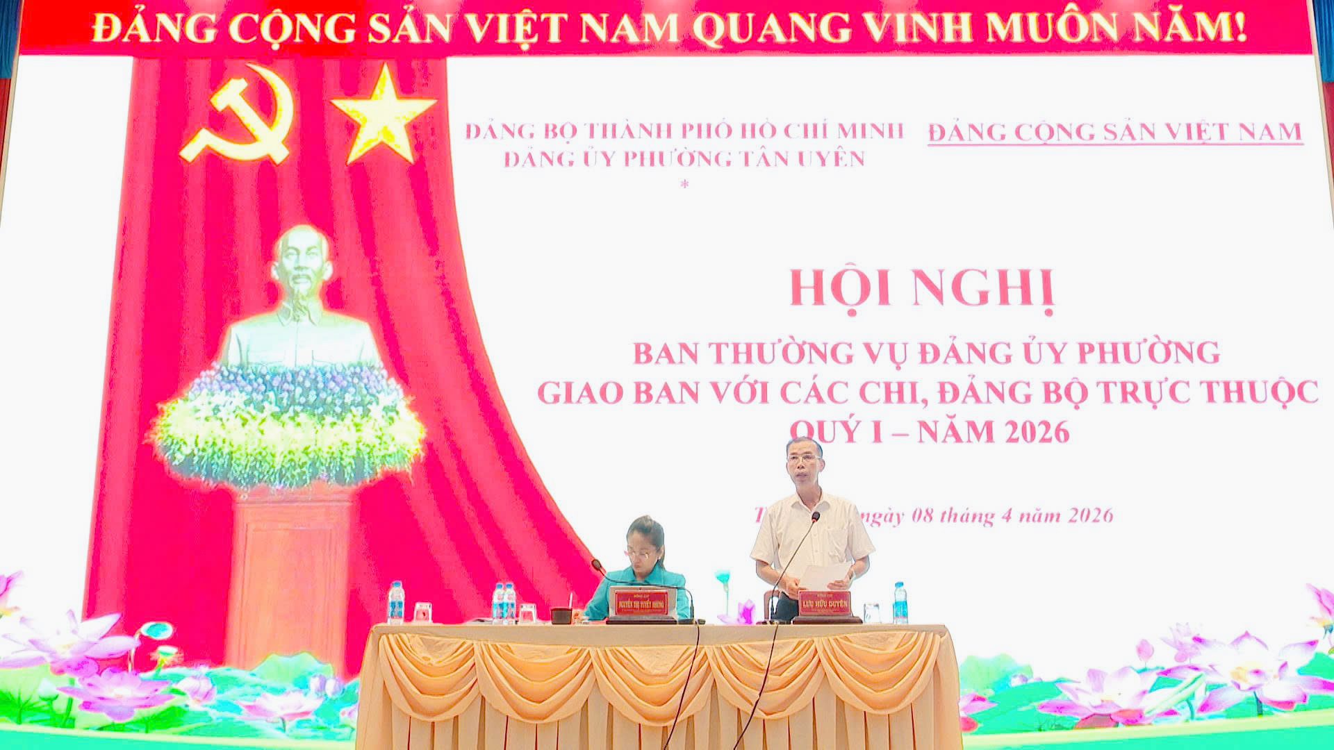 Chiều ngày 8/4, Ban thường vụ Đảng ủy phường Tân Uyên tổ chức hội nghị giao ban với các Chi, Đảng bộ trực thuộc Đảng ủy phường nhằm kịp thời nắm bắt tình hình hoạt động và triển khai thực hiện nhiệm vụ của các chi, đảng bộ trực thuộc quý I năm 2026.