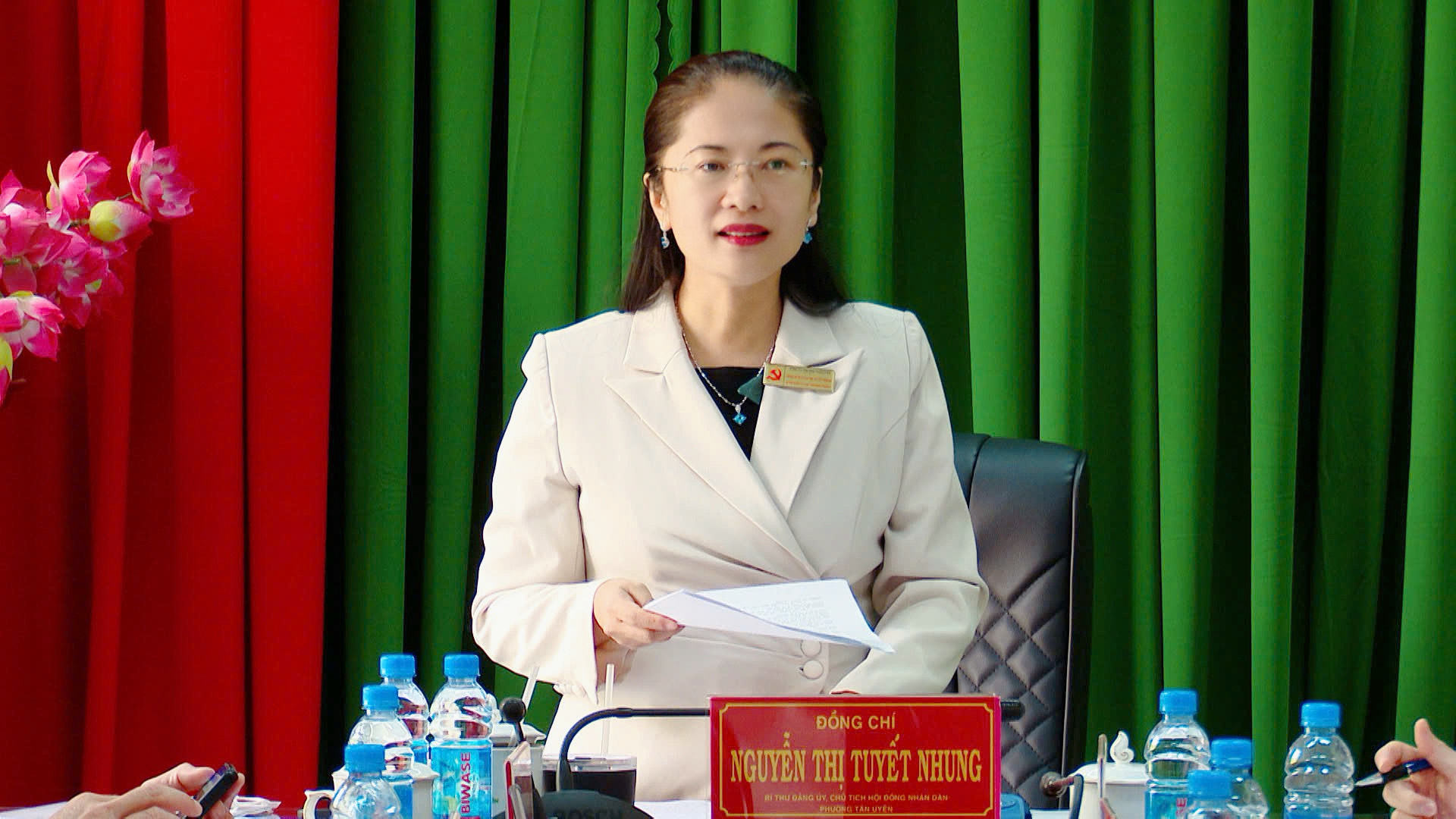 Phát biểu kết luận cuộc họp, đồng chí Nguyễn Thị Tuyết Nhung – Bí thư Đảng ủy, Chủ tịch HĐND phường Tân Uyên đề nghị, đối với công tác cán bộ, đảng viên, giao Ban Xây dựng Đảng tham mưu Ban Thường vụ thực hiện việc bổ nhiệm lại cán bộ quản lý đúng tiêu chuẩn, quy trình; thống nhất các nội dung phát triển đảng viên, công nhận đảng viên chính thức đối với các trường hợp đủ điều kiện; yêu cầu các chi bộ trực thuộc quan tâm bồi dưỡng đội ngũ kế thừa, nâng cao năng lực lãnh đạo của tổ chức cơ sở Đảng. Về phương án đối với Xí nghiệp Công trình công cộng, đề nghị UBND phường khẩn trương rà soát, hoàn thiện phương án tối ưu, bảo đảm giải quyết các vấn đề theo đúng tinh thần hướng dẫn tại Công văn số 9379 ngày 19/11/2025 của Sở Nội vụ TP. Hồ Chí Minh. Đối với việc thực hiện Kế hoạch số 17-KH/TU của Thành ủy, yêu cầu toàn hệ thống chính trị quán triệt nghiêm túc chỉ đạo của đồng chí Tổng Bí thư Tô Lâm về nâng cao hiệu lực, hiệu quả công tác kiểm tra, giám sát và thi hành kỷ luật Đảng theo tinh thần Kế hoạch số 237-KH/UBKTTW của Ủy ban Kiểm tra Trung ương. Về Kỳ họp HĐND phường lần thứ bảy (chuyên đề) và Hội nghị tổng kết hoạt động HĐND phường Tân Uyên nhiệm kỳ 2021–2026, thống nhất chủ trương tổ chức kỳ họp và chuẩn bị chu đáo các nội dung hội nghị; Thường trực HĐND phối hợp chặt chẽ với các đơn vị liên quan đánh giá toàn diện, khách quan kết quả nhiệm kỳ, rút ra bài học kinh nghiệm cho giai đoạn tiếp theo. Đồng chí Bí thư Đảng ủy nhấn mạnh các bộ phận chuyên môn bám sát nội dung đã thống nhất, khẩn trương hoàn thiện văn bản và tổ chức triển khai thực hiện đạt hiệu quả cao nhất.