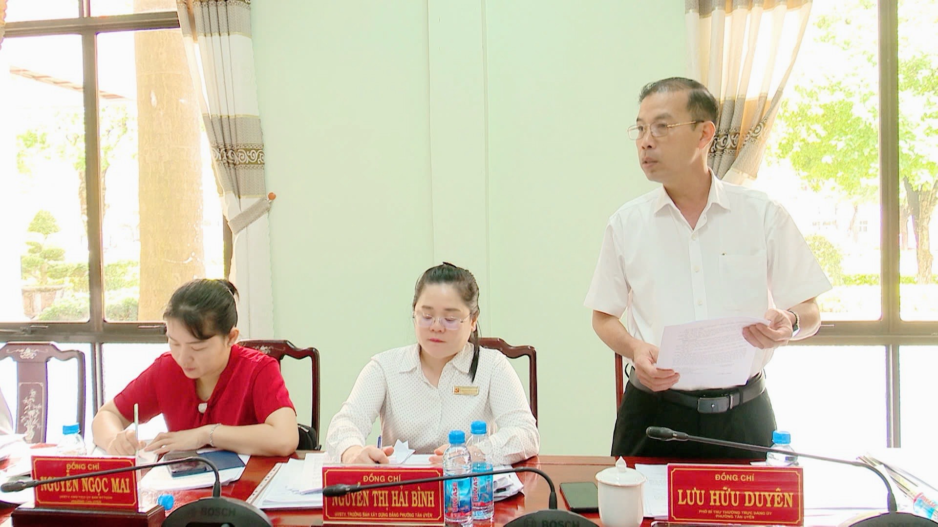 Sáng ngày 5/11, Ban Thường vụ Đảng uỷ phường Tân Uyên xem xét nhiều nội dung do các cơ quan chuyên môn tham mưu, giúp việc trình xin ý kiến. Đồng chí Nguyễn Thị Tuyết Nhung - Bí thư Đảng uỷ, Chủ tịch HĐND phường Tân Uyên chủ trì hội nghị. Cùng dự có đồng chí Lưu Hữu Duyên - Phó Bí thư Thường trực Đảng uỷ, Giám đốc Trung tâm Chính trị phường, các đồng chí trong Ban Thường vụ Đảng uỷ, lãnh đạo các cơ quan liên quan.