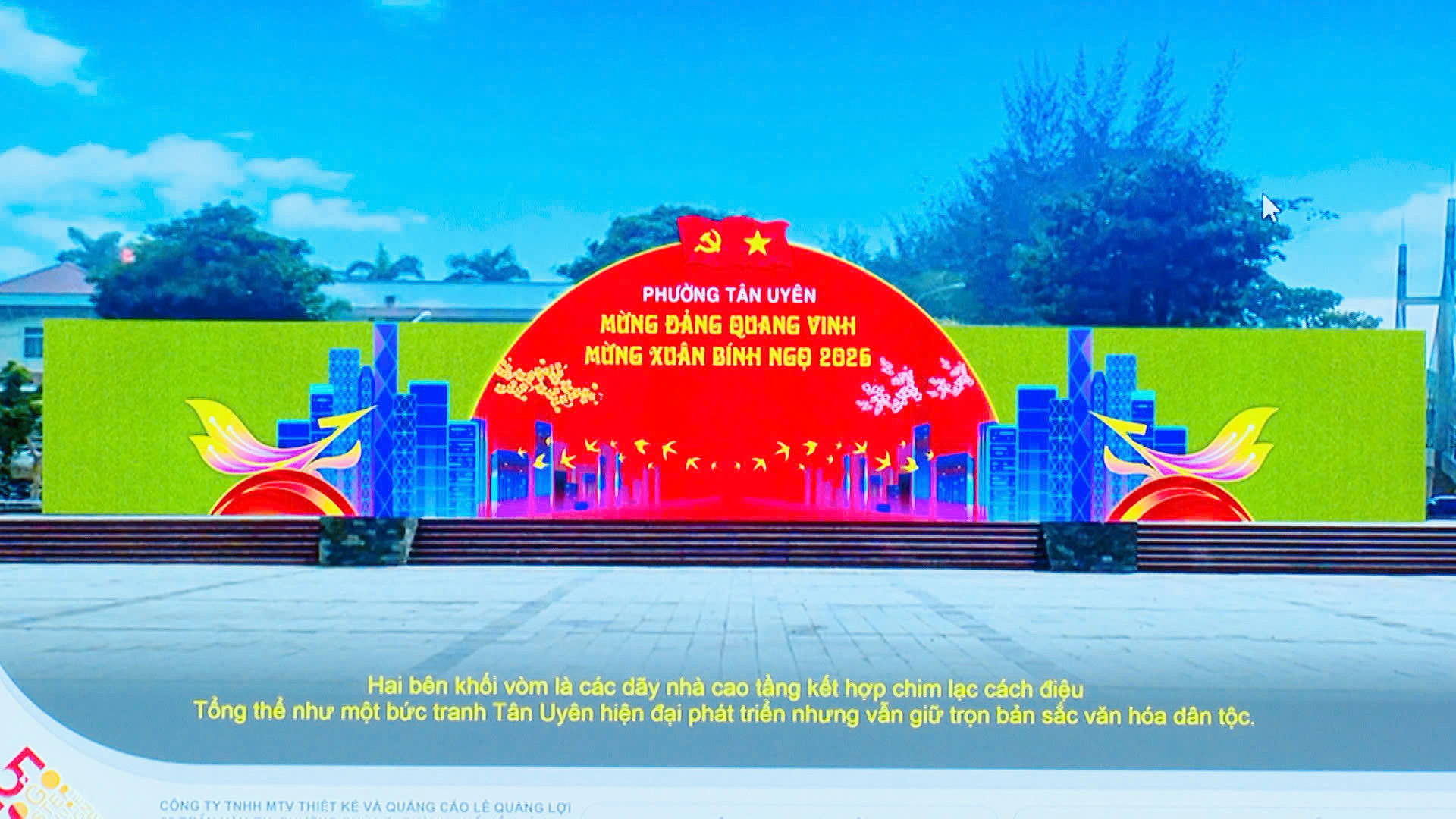 Đơn vị tư vấn thiết kế đã trình chiếu phương án phối cảnh các tiểu cảnh trang trí Tết Nguyên đán Bính Ngọ năm 2026 trên địa bàn phường để Ban Thường vụ Đảng uỷ xem xét, cho ý kiến.