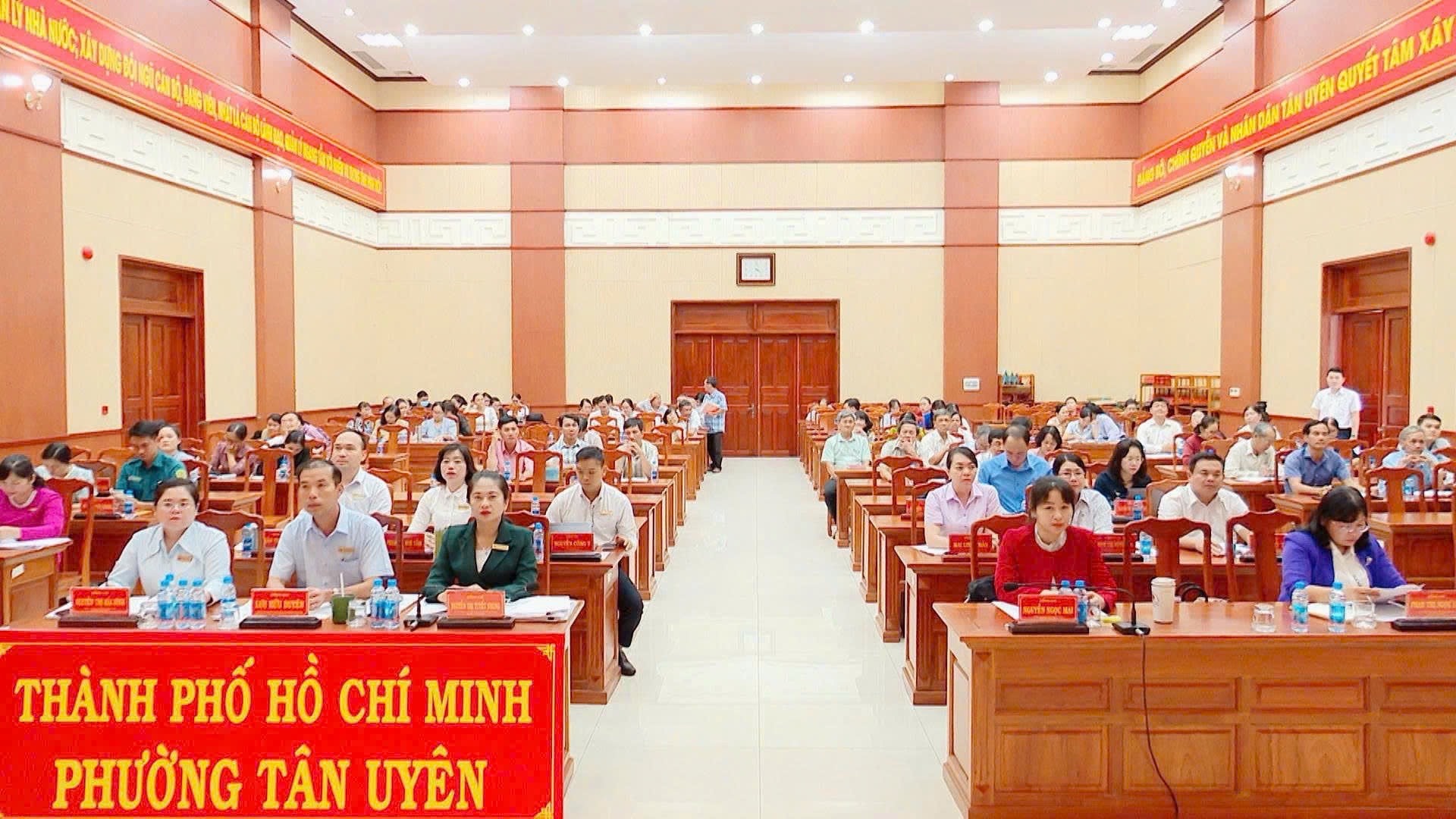 Tham dự tại điểm cầu phường Tân Uyên có đồng chí Nguyễn Thị Tuyết Nhung, Bí thư Đảng uỷ, Chủ tịch Hội đồng nhân dân phường; đồng chí Lưu Hữu Duyên, Phó Bí thư Thường trực Đảng ủy, Giám đốc Trung tâm Chính trị phường; các đồng chí Ủy viên Ban Thường vụ Đảng ủy, Ủy viên Ban Chấp hành Đảng bộ phường; lãnh đạo các cơ quan chuyên trách tham mưu, giúp việc đảng ủy; Cán bộ lãnh đạo, chuyên viên phụ trách công tác xây dựng đảng, công tác chuyển đổi số của Đảng ủy; Bí thư, Phó Bí thư các chi, đảng bộ trực thuộc.