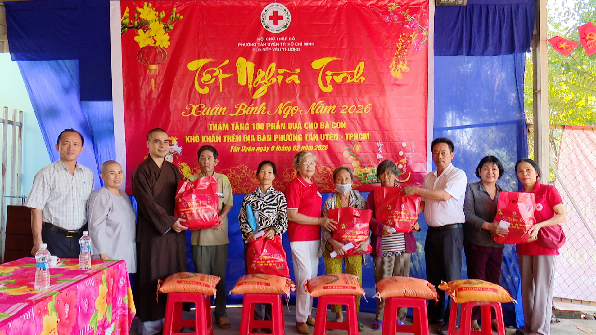 Nhằm góp phần mang đến không khí ấm áp, nghĩa tình trong dịp Tết cổ truyền của dân tộc, Sáng ngày 9/02, Câu lạc bộ Bếp yêu thương phường Tân Uyên phối hợp với các ban, ngành đoàn thể của phường tổ chức trao tặng 100 phần quà Tết nhân dịp xuân Bính Ngọ năm 2026 cho người dân khó khăn, người già neo đơn, người khuyết tật, công nhân lao động khó khăn, mỗi phần quà trị giá 400 nghìn đồng gồm gạo, dầu ăn, bánh, nước tương, đường, bột ngọt,... Tổng số tiền trong đợt trao tặng này là 40 triệu đồng.