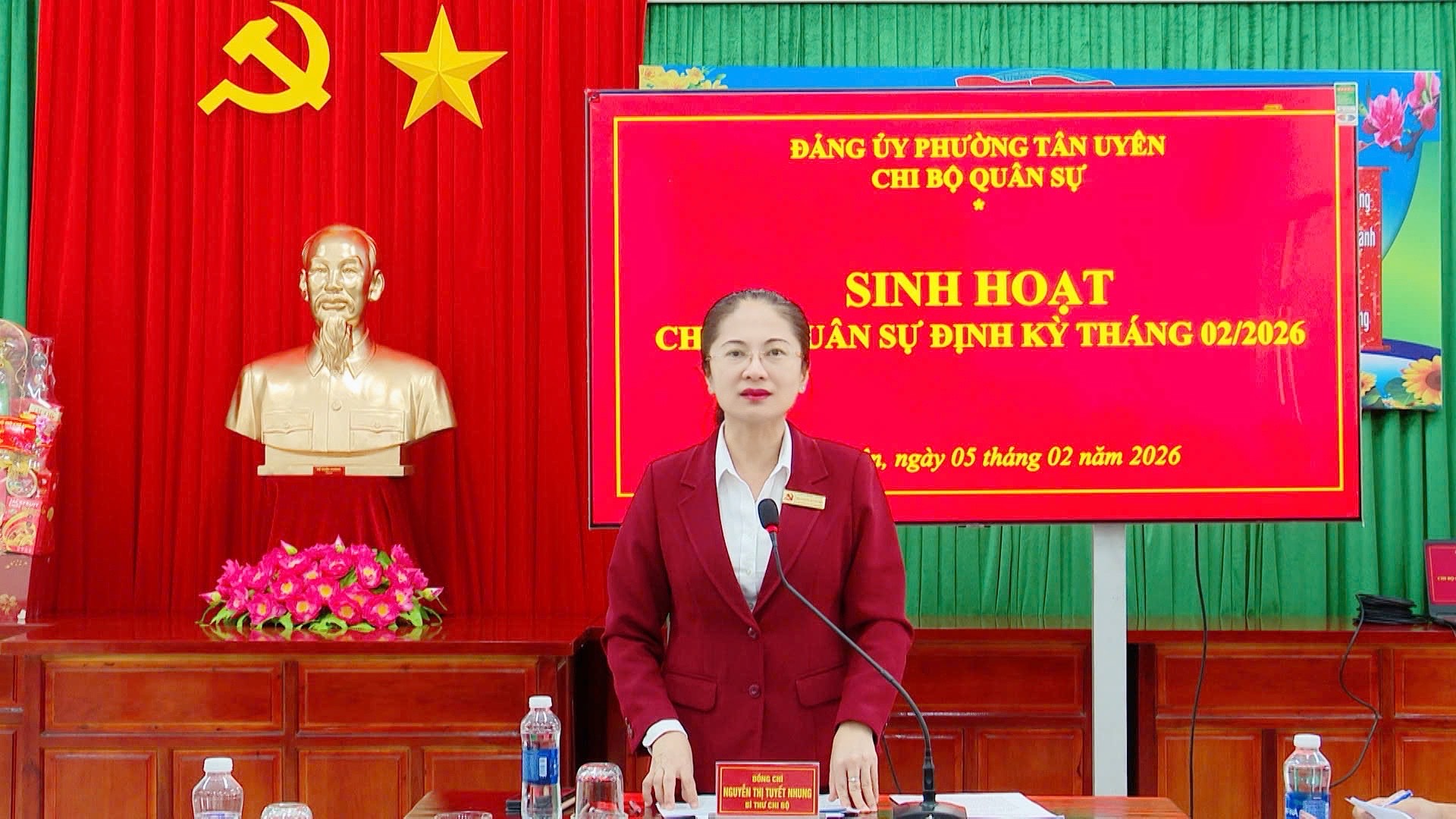 Chiều 5/2, đồng chí Nguyễn Thị Tuyết Nhung, Bí thư Đảng uỷ, Chủ tịch HĐND phường Tân Uyên, Bí thư Chi bộ Quân sự phường chủ trì cuộc họp Chi bộ Quân sự tháng 02/2026. Cùng dự có các đồng chí Chi uỷ viên, đảng viên Chi bộ.