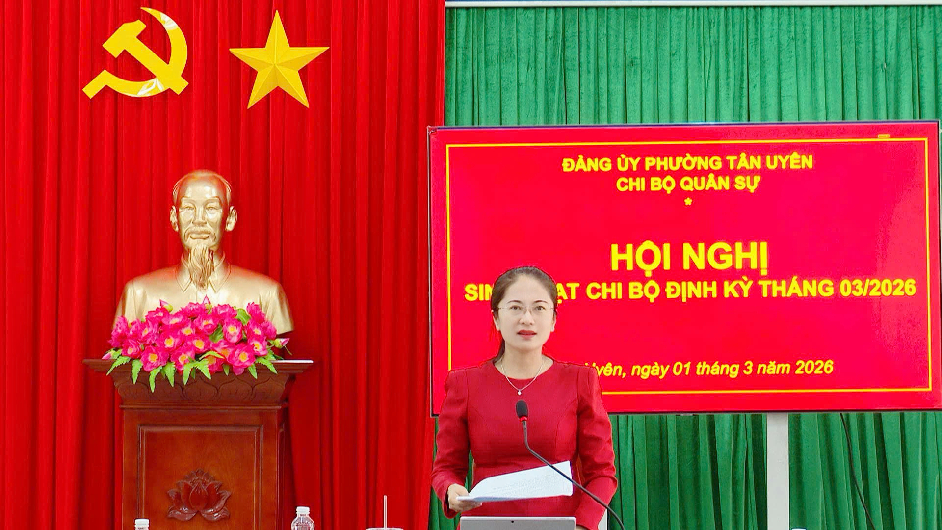 Sáng ngày 01/3, Chi bộ Quân sự phường Tân Uyên tổ chức hội nghị sinh hoạt chi bộ định kỳ tháng 03/2026. Đồng chí Nguyễn Thị Tuyết Nhung, Bí thư Đảng uỷ, Chủ tịch HĐND phường Tân Uyên, Bí thư Chi bộ Quân sự phường chủ trì hội nghị. Tham dự có đồng chí Nguyễn Tấn Lập, Phó Bí thư Đảng ủy, Chủ tịch UBND phường; đồng chí Trung tá Đoàn Phương Tùng, Uỷ viên Thường vụ, Chỉ huy trưởng Ban CHQS phường, Phó Bí thư Chi bộ Quân sự cùng các đồng chí Chi uỷ viên, đảng viên Chi bộ.