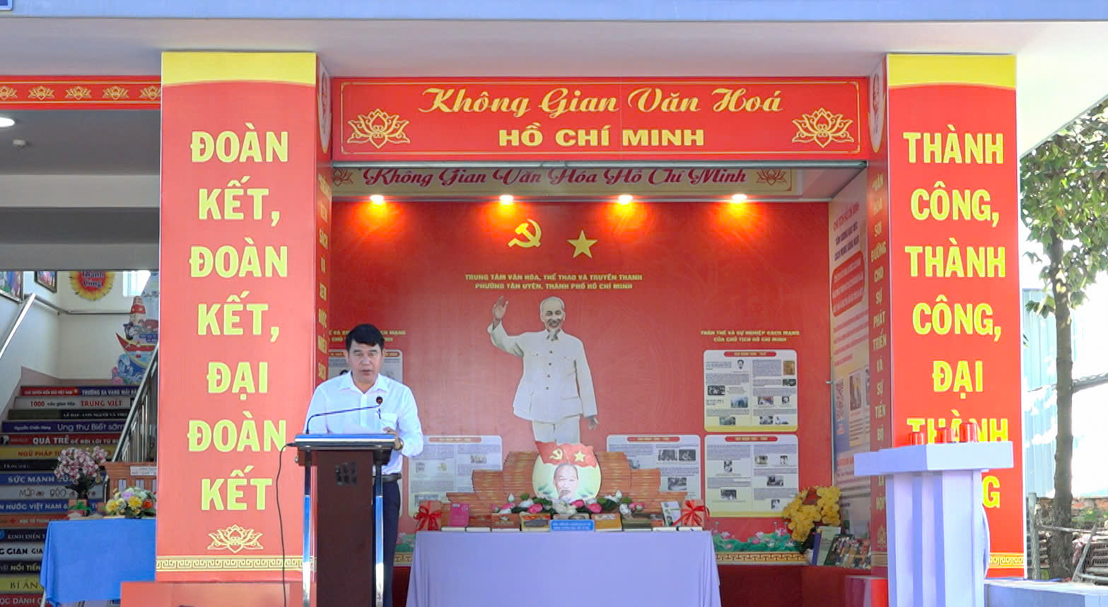 Phát biểu về mục đích, ý nghĩa tại lễ ra mắt “Không gian văn hóa Hồ Chí Minh”, đồng chí Nguyễn Thanh Huyện, Đảng ủy viên, Bí thư chi bộ, Giám đốc Trung tâm VHTT&TT phường cho biết: “Không gian văn hóa Hồ Chí Minh” là hoạt động có ý nghĩa chính trị-văn hóa sâu sắc, thể hiện lòng thành kính và biết ơn vô hạn đối với Chủ tịch Hồ Chí Minh-vị lãnh tụ thiên tài của Đảng và dân tộc ta, Anh hùng giải phóng dân tộc, Danh nhân văn hóa thế giới. Việc xây dựng và đưa vào hoạt động “Không gian Văn hóa Hồ Chí Minh” tại Trung tâm VHTT&TT phường là bước cụ thể hóa việc học tập và làm theo tư tưởng, đạo đức, phong cách Hồ Chí Minh; là nơi để mỗi cán bộ, đảng viên, người lao động học sinh…trên địa bàn phường khi đến sinh hoạt tại Thư viện sẽ được tìm hiểu, nghiên cứu, học tập về cuộc đời, sự nghiệp, tấm gương đạo đức, phong cách của Bác; đồng thời là điểm sinh hoạt chính trị, văn hóa, giáo dục truyền thống mang tính thường xuyên, thiết thực và ý nghĩa. “Không gian Văn hóa Hồ Chí Minh” không chỉ là nơi trưng bày hình ảnh, tư liệu về Bác, mà còn là biểu tượng của tinh thần học tập và làm theo Bác trong toàn thể viên chức, người lao động cơ quan. Mỗi góc trưng bày, mỗi hình ảnh, mỗi trang sách ở đây đều gửi gắm một thông điệp: hãy sống, làm việc, cống hiến với tinh thần "cần, kiệm, liêm, chính, chí công vô tư", hết lòng vì Nhân dân, vì Tổ quốc như lời Bác dạy. Đây là một trong những hoạt động của đơn vị nhằm đa dạng hóa các giải pháp tuyên truyền, nâng cao nhận thức trong cán bộ, đảng viên, đoàn viên, hội viên và các tầng lớp Nhân dân về ý nghĩa xây dựng “Không gian văn hóa Hồ Chí Minh”; góp phần thực hiện hiệu quả 3 nhiệm vụ quan trọng và các mục tiêu cốt lõi đã đề ra theo chương trình hành động số 44-CTrHĐ/TU ngày 19/8/2023 của Thành ủy TP.Hồ Chí Minh và Kế hoạch của Đảng ủy phường Tân Uyên. Với mục đích, ý nghĩa, đồng chí kêu gọi tất cả đảng viên, viên chức, người lao động Trung tâm VHTT&TT phường hãy cùng nhau giữ gìn, phát huy giá trị của “Không gian Văn hóa Hồ Chí Minh”, biến nơi đây thành nguồn cảm hứng, động lực tinh thần cho mỗi người trong học tập, lao động, sáng tạo và phục vụ Nhân dân.