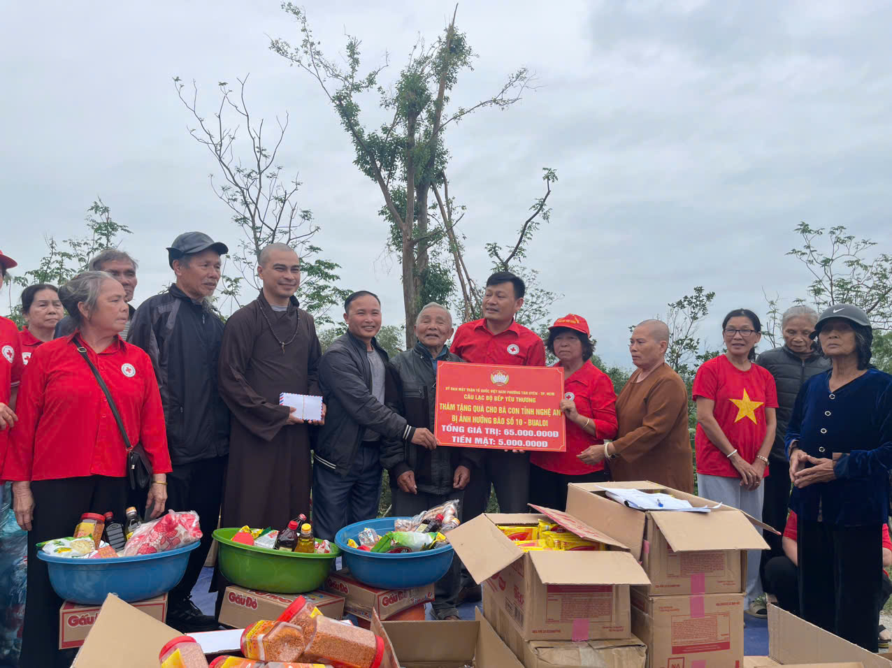 Tại đây, đoàn đã trao tặng 100 phần quà, mỗi phần trị giá 650.000 đồng cùng 100.000 đồng tiền mặt gửi đến các hộ dân có hoàn cảnh khó khăn nhằm góp phần giúp bà con ổn định cuộc sống, khắc phục hậu quả sau thiên tai.