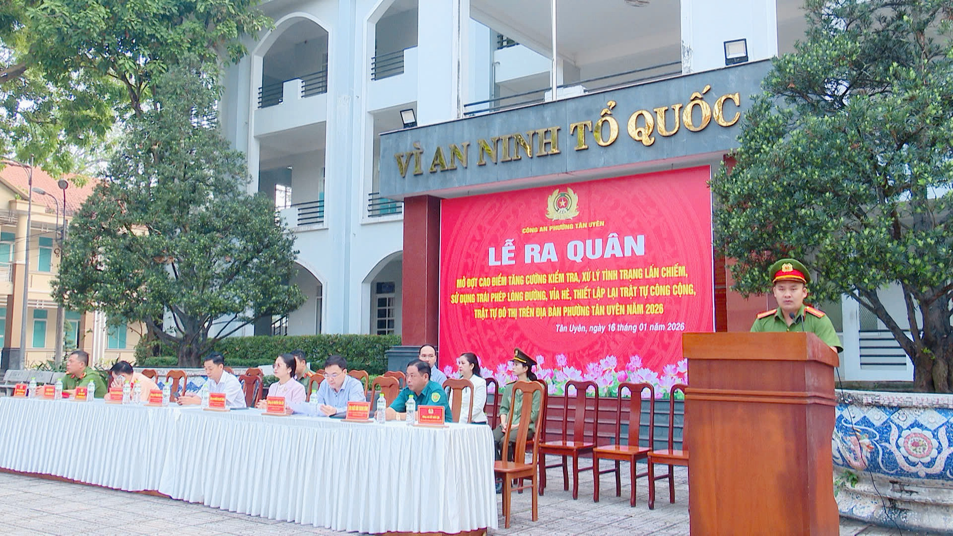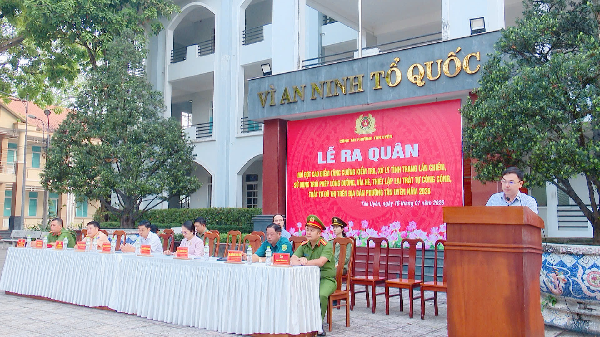 Ngay sau buổi lễ, cán bộ chiến sĩ tham gia diễu hành thể hiện sự quyết tâm, vai trò nòng cốt, tinh thần đấu tranh quyết liệt của lực lượng vũ trang thực hiện cao điểm tăng cường kiểm tra, xử lý tình trạng lấn chiếm, sử dụng trái phép lòng đường, vỉa hè, thiết lập lại TTCC, TTĐT trên địa bàn phường Tân Uyên năm 2026. Qua đó, nhằm tuyên truyền rộng rãi trong nhân dân, tạo khí thế, quyết liệt, khơi dậy tinh thần trách nhiệm của mỗi tổ chức, cá nhân tích cực cùng tham gia lập lại TTCC, TTĐT trên địa bàn, góp phần xây dựng phường Tân Uyên ngày càng văn minh, hiện đại và nghĩa tình.
