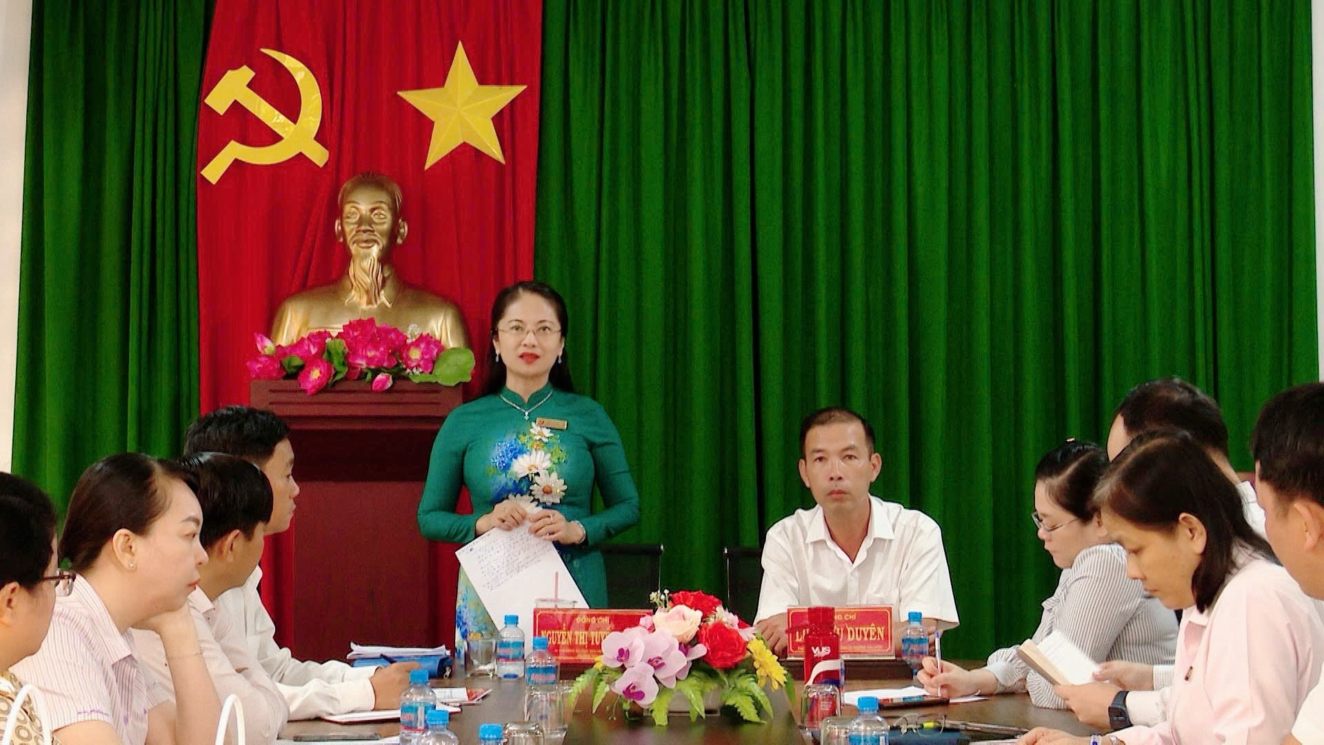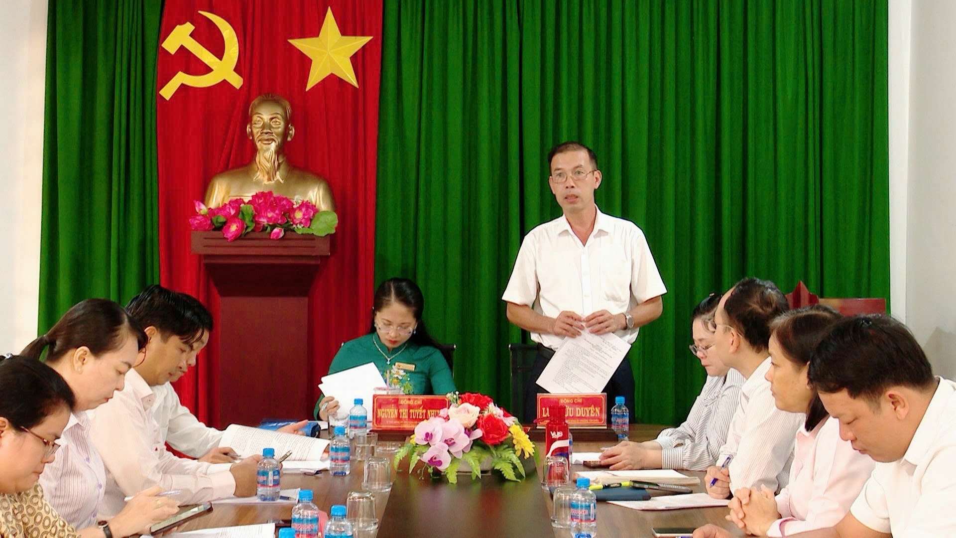Dự hội nghị có đồng chí Nguyễn Thị Tuyết Nhung - Bí thư Đảng uỷ, Chủ tịch HĐND phường Tân Uyên, đồng chí Lưu Hữu Duyên - Phó Bí thư Thường trực Đảng uỷ, Giám đốc Trung tâm Chính trị phường, đồng chí Nguyễn Thị Hải Bình - Uỷ viên Ban Thường vụ, Trưởng Ban Xây dựng Đảng, đồng chí Đặng Đình Trí - Uỷ viên Ban Thường vụ, Phó Chủ tịch UBND phường cùng lãnh đạo các cơ quan chuyên trách tham mưu giúp việc và đảng viên chi bộ Xí nghiệp Công trình Công cộng.