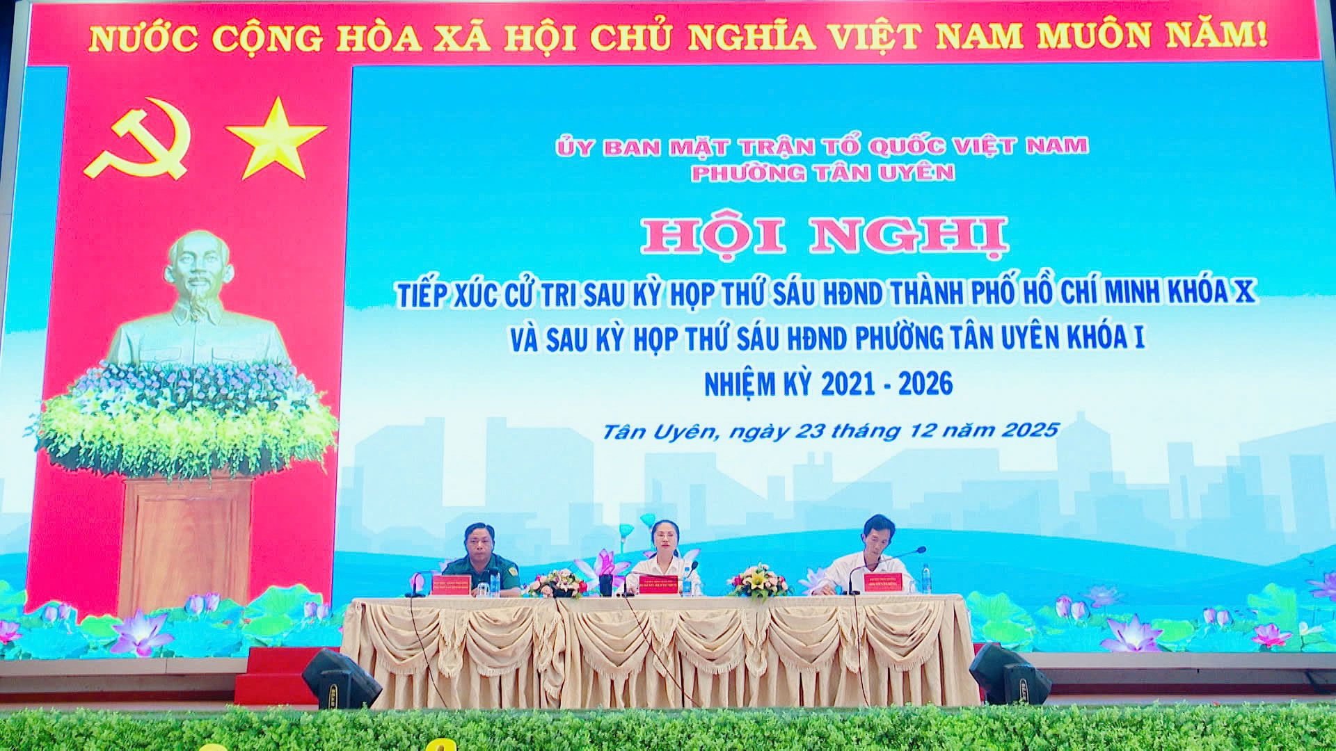 Sáng ngày 23/12, đại biểu HĐND Thành phố Hồ Chí Minh có bà Nguyễn Thị Tuyết Nhung - Bí thư Đảng ủy, Chủ tịch HĐND phường Tân Uyên; đại biểu HĐND phường có ông Võ Văn Dũng-Phó Ban xây dựng Đảng ủy phường, ông Ngô Văn Thanh Bình-Chỉ huy trưởng Ban CHQS phường, cùng các đại biểu HĐND phường thuộc tổ đại biểu số 1, số 2 có buổi tiếp xúc với hơn 140 cử tri trên địa bàn phường sau kỳ họp thứ sáu (Thường lệ cuối năm) Hội đồng nhân dân (HĐND) thành phố Hồ Chí Minh khóa X và sau kỳ họp thứ sáu HĐND phường Tân Uyên khóa I, nhiệm kỳ 2021-2026.