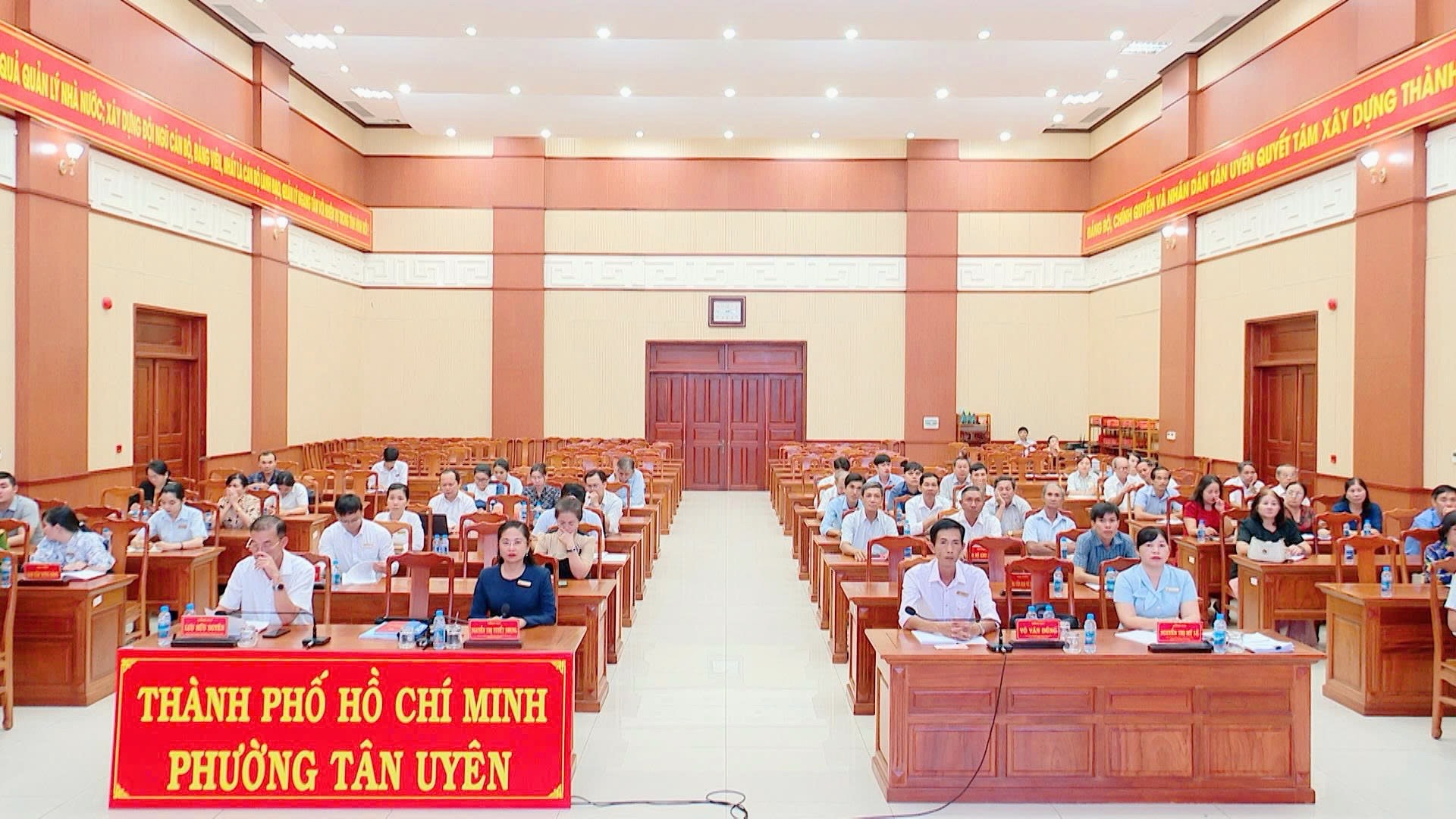 Dự hội nghị tại điểm cầu Đảng ủy phường Tân Uyên có đồng chí Nguyễn Thị Tuyết Nhung, Bí thư Đảng uỷ, Chủ tịch hội đồng nhân dân phường; đồng chí Lưu Hữu Duyên, Phó Bí thư thường trực đảng ủy, Giám đốc Trung tâm chính trị phường; đại diện lãnh đạo UBND phường; lãnh đạo và chuyên viên Ban Xây dựng Đảng; đại diện lãnh đạo và Chuyên viên phụ trách lĩnh vực của Phòng Văn hóa-Xã hội; Bí thư các Chi, Đảng bộ trực thuộc Đảng ủy phường.