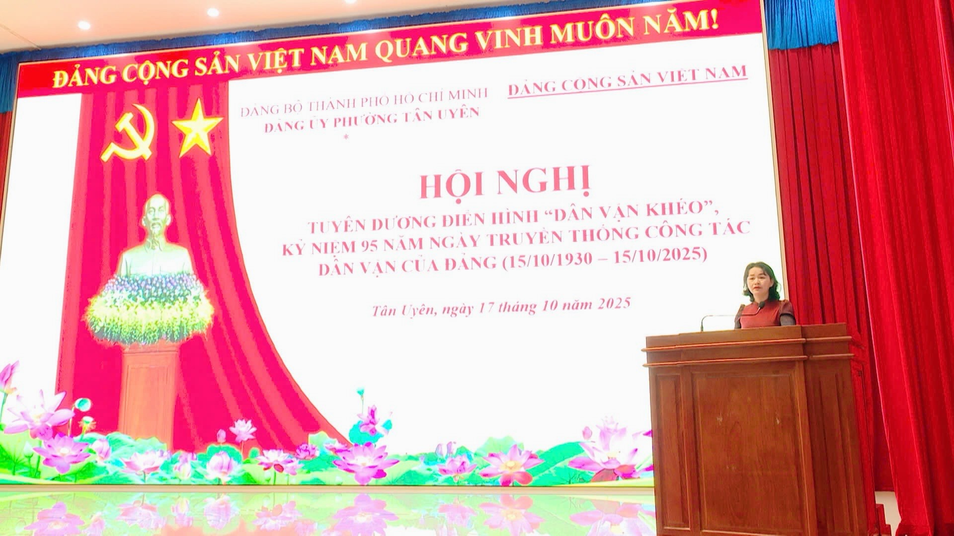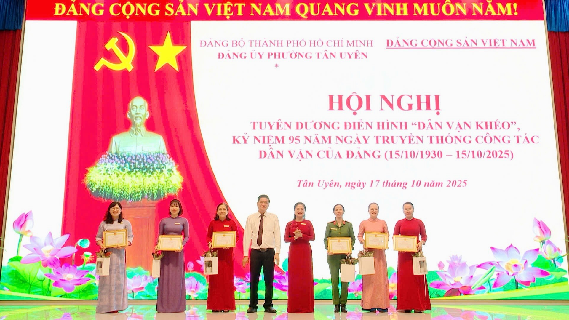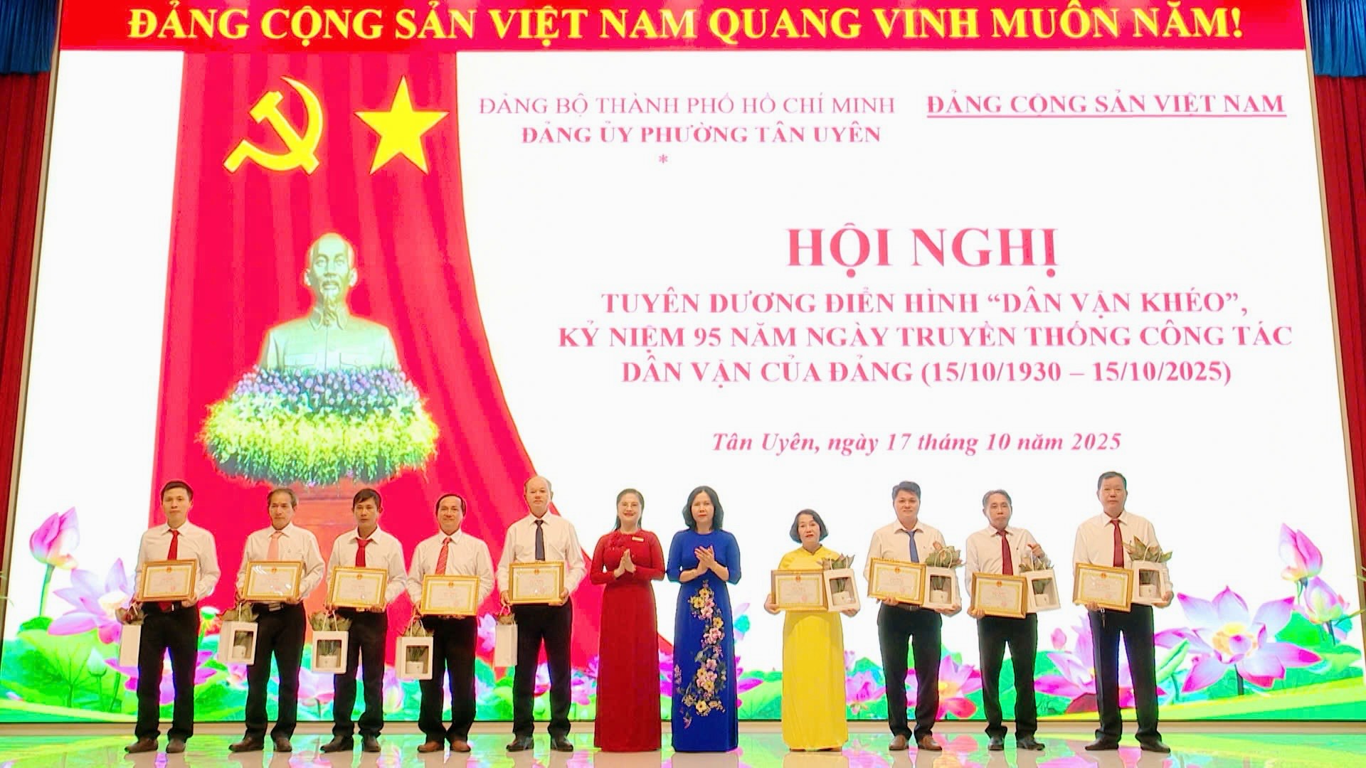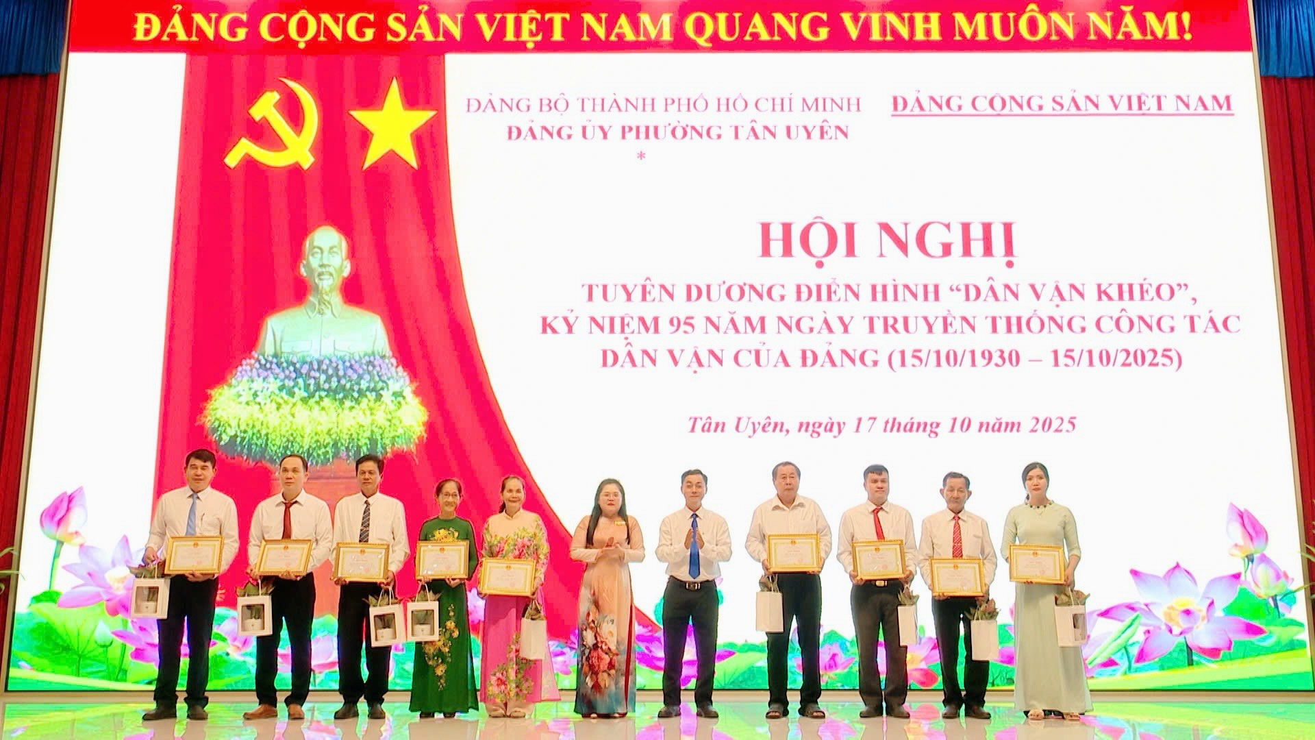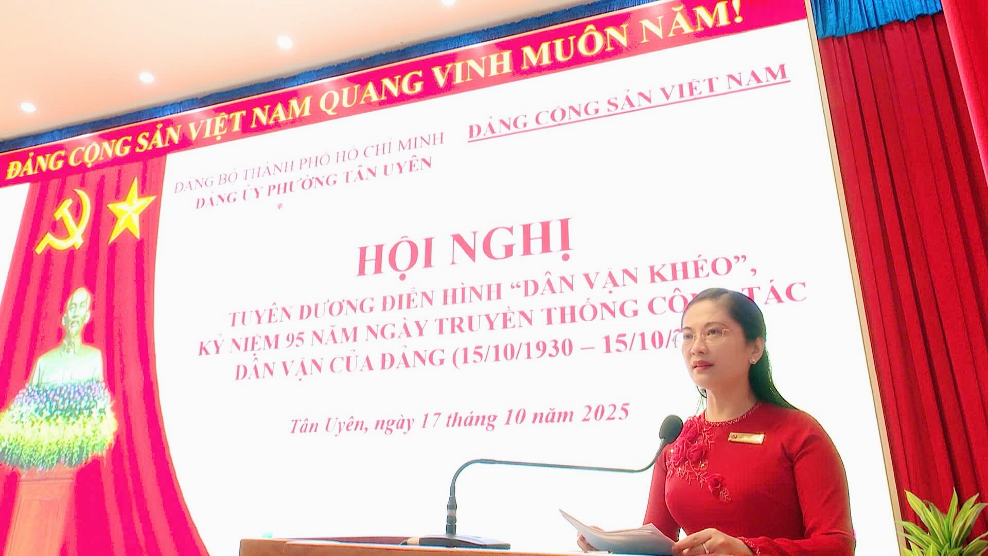 Sáng ngày 17/10, Đảng ủy phường Tân Uyên tổ chức Hội nghị tuyên dương điển hình “Dân vận khéo”, kỷ niệm 95 năm ngày truyền thống công tác Dân vận của Đảng (15/10/1930-15/10/2025). Đồng chí Nguyễn Thị Tuyết Nhung, Bí thư Đảng ủy, Chủ tịch HĐND phường dự và chỉ đạo hội nghị.
