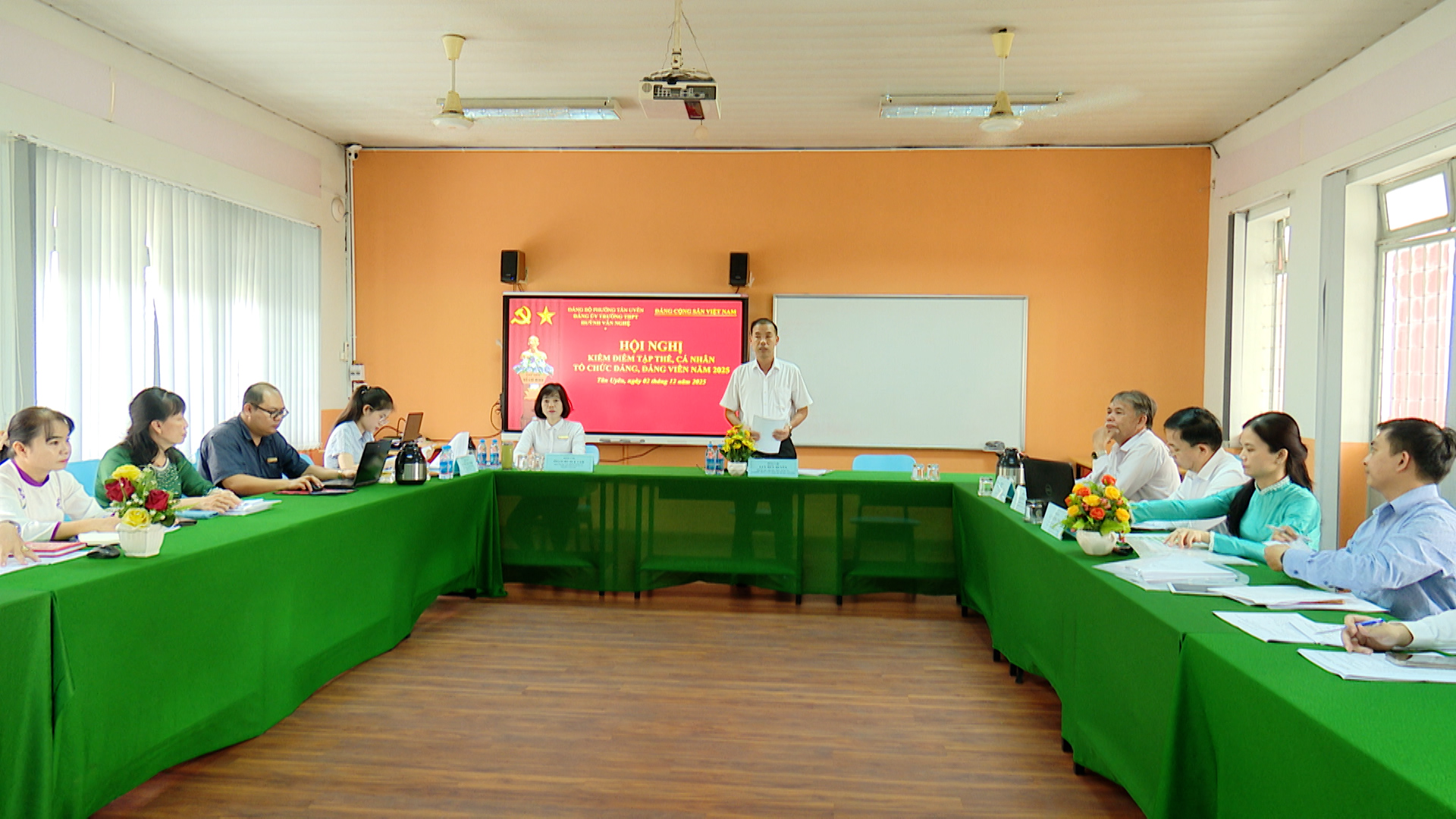 Chiều 02/12, Đảng ủy Trường THPT Huỳnh Văn Nghệ, phường Tân Uyên tổ chức hội nghị kiểm điểm, đánh giá xếp loại chất lượng, tổ chức đảng, đảng viên năm 2025.V Dự hội nghị có đồng chí Lưu Hữu Duyên - Phó Bí thư Thường trực Đảng uỷ, Giám đốc Trung tâm Chính trị phường; đồng chí Nguyễn Tấn Tài - Bí thư Đảng ủy, Hiệu trưởng Trường THPT Huỳnh Văn Nghệ; cùng dự có các đồng chí trong Đảng ủy nhà Trường.
