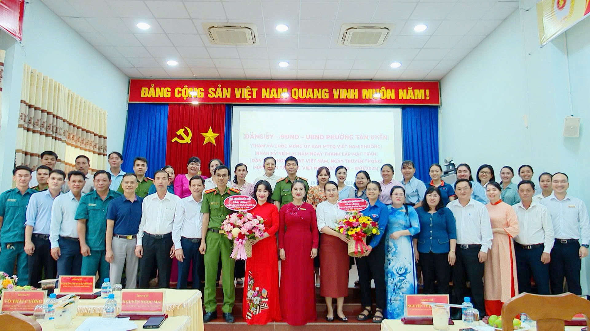 Tiếp và làm việc với đoàn có đồng chí Đoàn Hồng Tươi, Phó Bí thư Thành ủy - Chủ tịch Ủy ban nhân dân thành phố Tân Uyên, phụ trách, điều hành Đảng bộ thành phố, đồng chí Nguyễn Thị Tuyết Nhung - Phó Bí thư Thường trực Thành uỷ cùng các đồng chí trong Ban Thường vụ Thành uỷ, lãnh đạo các cơ quan, đơn vị.