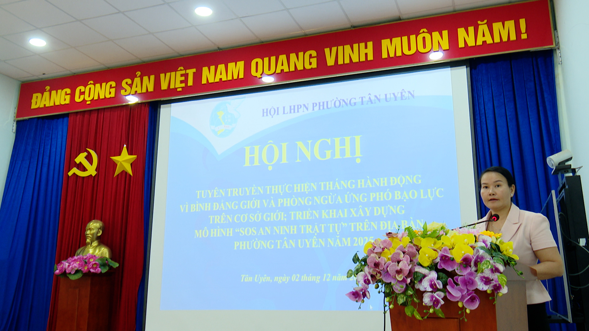Sáng ngày 02/12, Hội LHPN phường Tân Uyên tổ chức Hội nghị tuyên truyền thực hiện Tháng hành động vì bình đẳng giới và phòng ngừa ứng phó bạo lực trên cơ sở giới năm 2025; triển khai xây dựng mô hình “SOS an ninh trật tự” trên địa bàn phường.