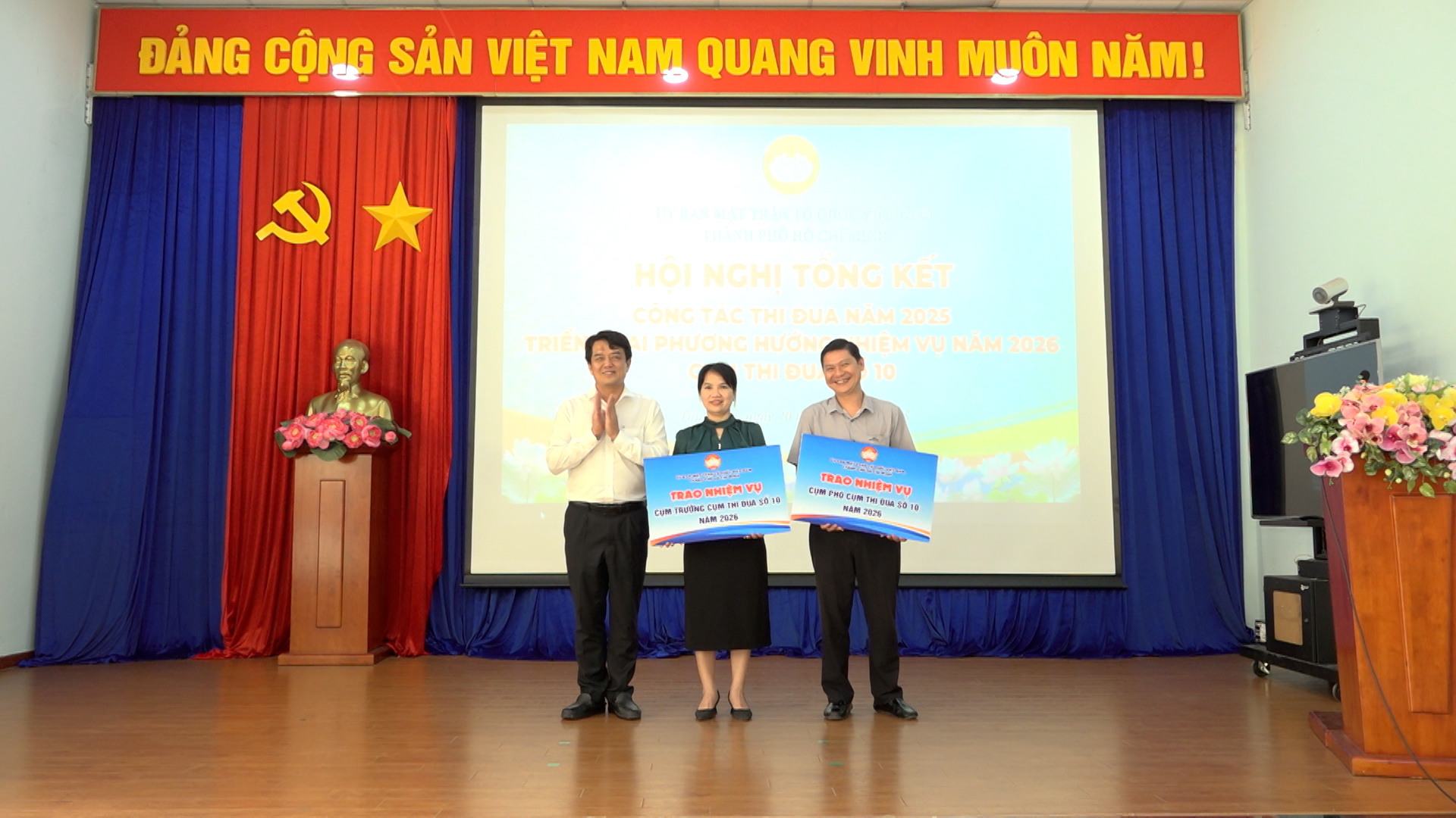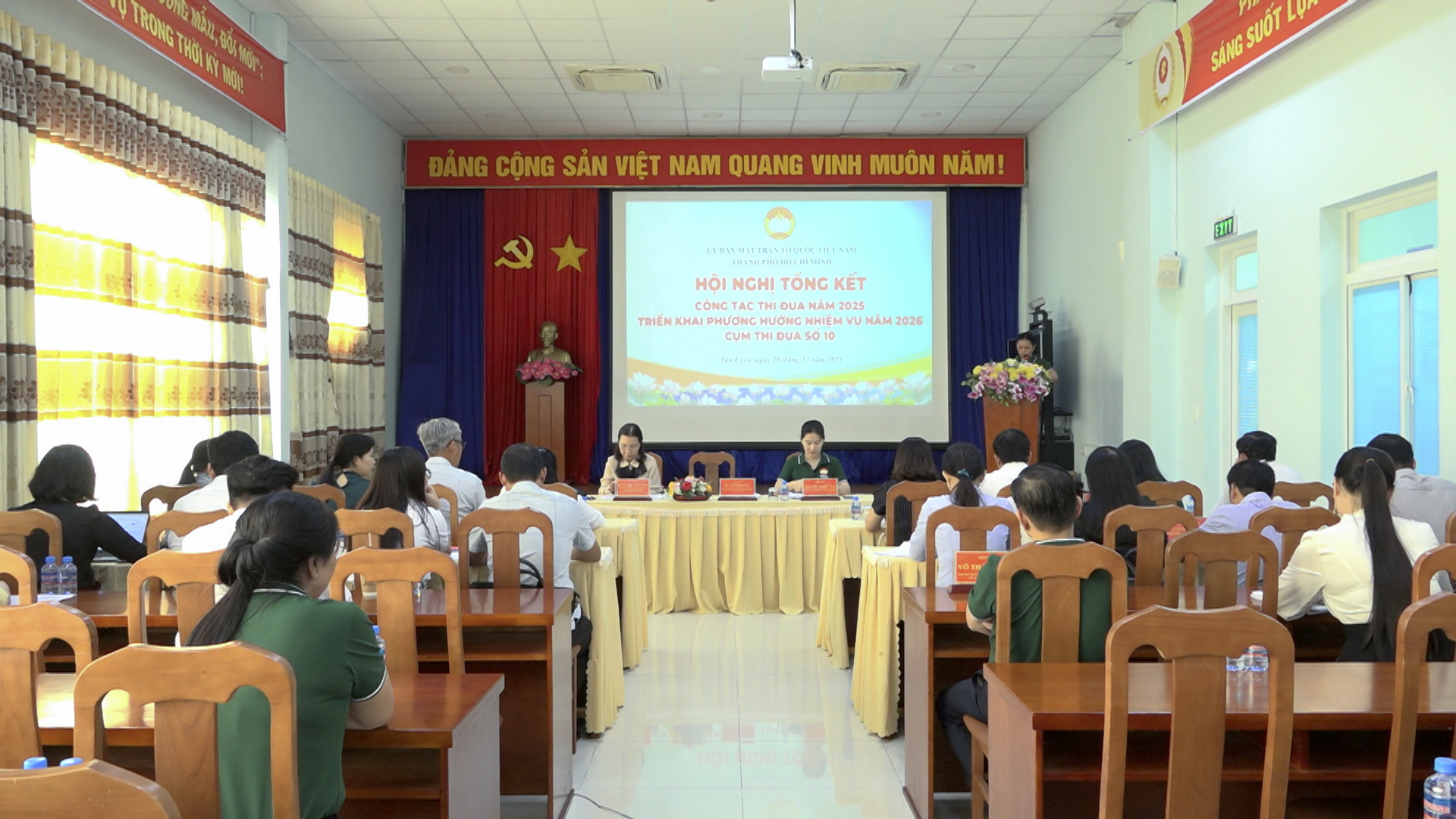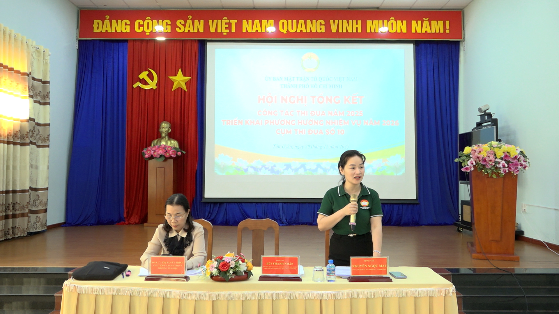 Tại chương trình, đã tiến hành thông qua bảng tổng hợp tự đánh giá và chấm điểm thi đua của 12 đơn vị thành viên, tiến hành thảo luận, trao đổi, chia sẻ những kinh nghiệm, hoạt động hiệu quả trong triển khai phong trào thi đua và nhiệm vụ chính trị và những hạn chế cần khắc phục của các thành viên trong Cụm thi đua số 10, thống nhất kết quả chấm điểm thi đua của các thành viên cụm thi đua, tổ chức bỏ phiếu suy tôn và đề nghị Hội đồng Thi đua - Khen thưởng Ủy ban MTTQ Việt Nam Thành phố Hồ Chí Minh khen thưởng các tập thể có thành tích xuất sắc năm 2025.