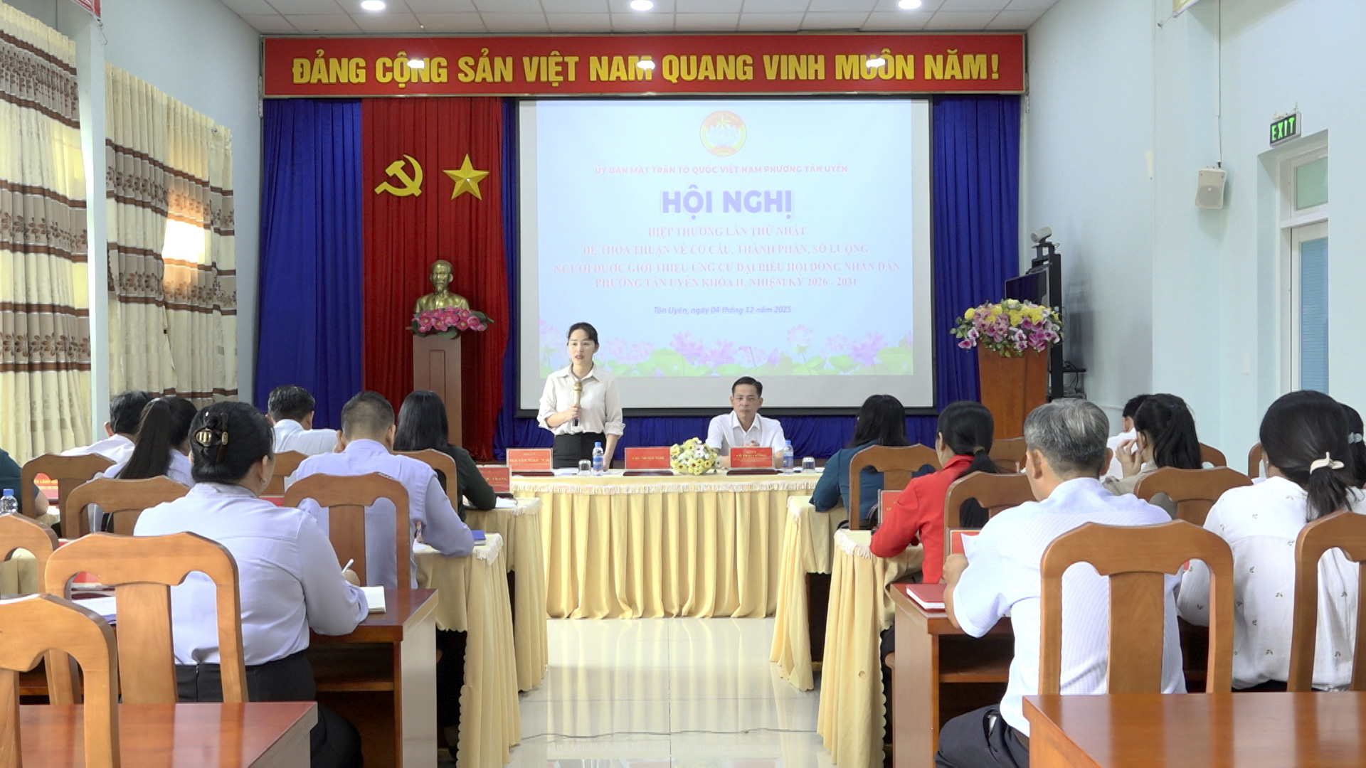 Sáng ngày 4/12, Ủy ban MTTQ Việt Nam phường Tân Uyên tổ chức Hội nghị Hiệp thương lần thứ nhất để thỏa thuận về cơ cấu, thành phần, số lượng người được giới thiệu ứng cử đại biểu Hội đồng nhân dân phường Tân Uyên khóa II, nhiệm kỳ 2026-2031. Bà Nguyễn Ngọc Mai, Ủy viên thường vụ (UVTV) Đảng ủy, Chủ tịch Ủy ban MTTQ Việt Nam phường; ông Võ Thái Cường, Phó Chủ tịch Thường trực Ủy ban MTTQ Việt Nam phường, Chủ tịch Công đoàn phường cùng chủ trì hội nghị.