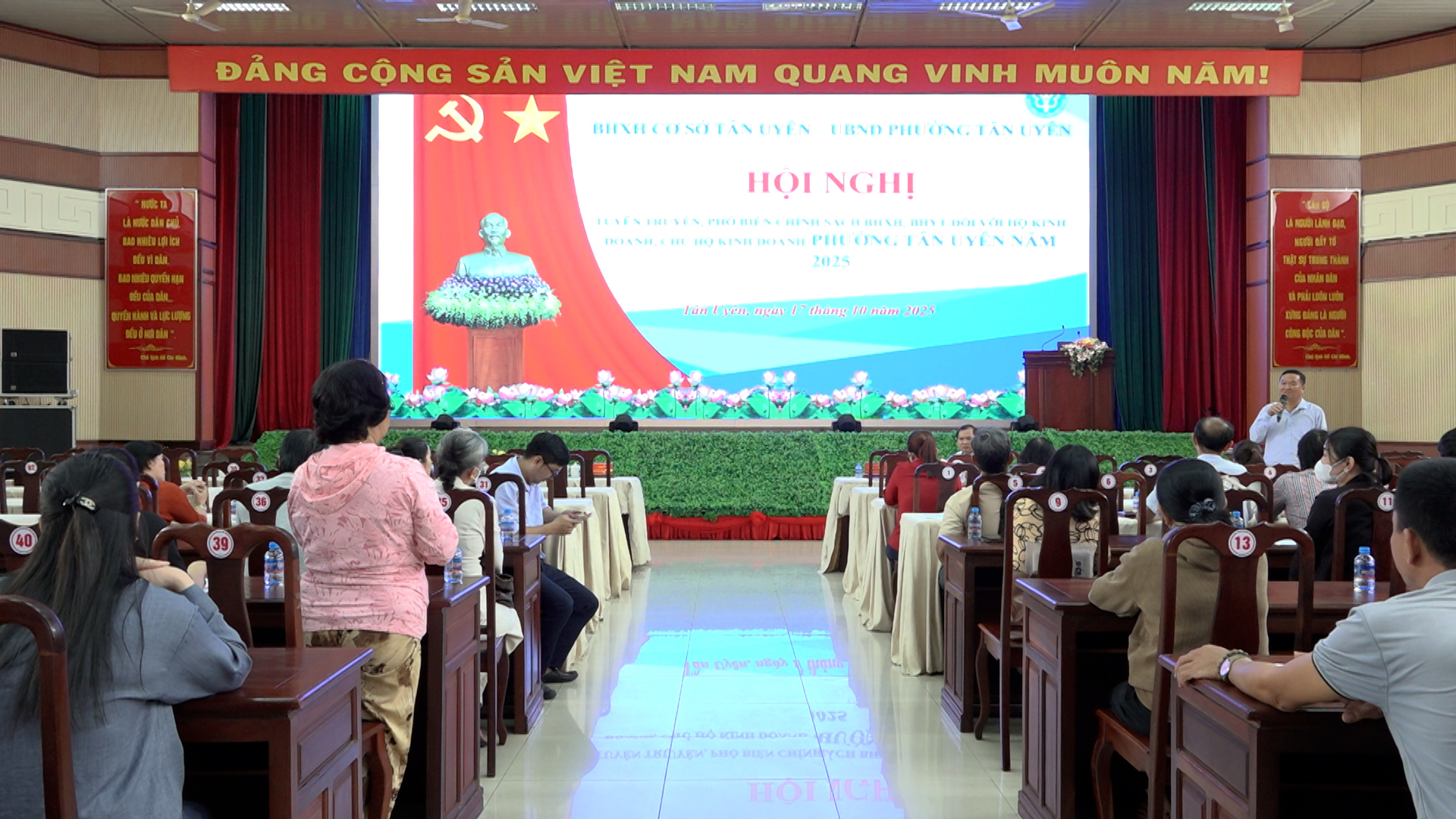 Phát biểu tại hội nghị, ông Lê Duy Hậu – UVTV, Phó Chủ tịch UBND phường khẳng định BHXH, BHYT là 2 chính sách lớn của Đảng và Nhà nước và là trụ cột chính trong hệ thống an sinh xã hội. Trong thời gian qua Đảng và Nhà nước rất quan tâm chỉ đạo thực hiện nhằm đảm bảo quyền lợi của nhân dân và tiến tới BHXH, BHYT toàn dân. Ông đề nghị toàn thể các hộ kinh doanh trên địa bàn hãy tích cực, chủ động tham gia BHXH, BHYT cho bản thân và người lao động, coi đây là một phần trách nhiệm và quyền lợi chính đáng của mình. Mỗi hộ kinh doanh hãy là một tuyên truyền viên tích cực, cùng chung tay xây dựng phường Tân Uyên trở thành địa phương đi đầu trong việc thực hiện chính sách an sinh xã hội.