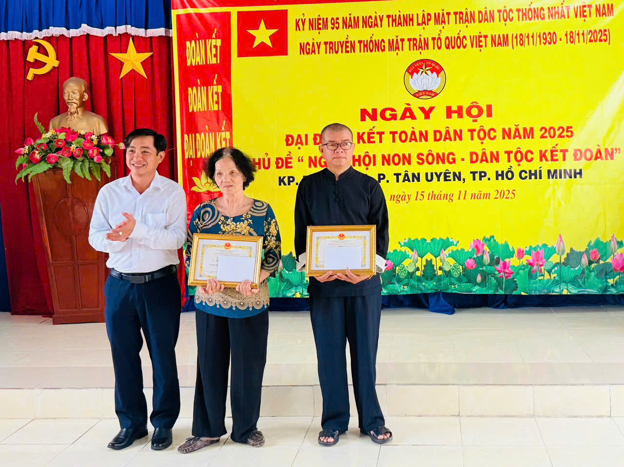 Tại Ngày hội, Ban Tổ chức đã trao giấy khen của Chủ tịch UBND phường Tân Uyên cho 02 gia đình, đạt danh hiệu “Gia đình văn hóa tiêu biểu” năm 2025, đồng thời, trao tặng 05 phần quà cho các hộ gia đình có hoàn cảnh đặc biệt khó khăn, mỗi phần trị giá 500 ngàn đồng. Cũng tại ngày hội, Ban Công tác Mặt trận khu phố Tân Lập 1 đã phát động phong trào thi đua năm 2026.