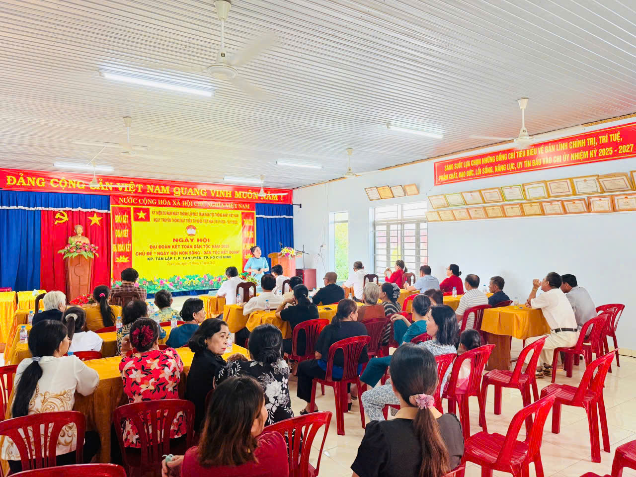 Nhân dịp kỷ niệm 95 năm Ngày thành lập Mặt trận dân tộc Thống nhất Việt Nam (18/11/1930-18/11/2025). Sáng ngày 15/11, Chi bộ, Ban Điều hành, Ban Công tác Mặt trận khu phố Tân Lập 1 tổ chức Ngày hội Đại đoàn kết toàn dân tộc năm 2025 với chủ đề “Ngày hội non sông - Dân tộc kết đoàn”. Đến dự Ngày hội có ông Nguyễn Tấn Phát, Đảng ủy viên – Trưởng Phòng Văn hóa, Xã hội phường, cùng dự có các chi hội và nhân dân trên địa bàn khu phố.
