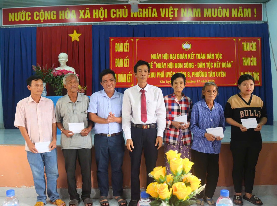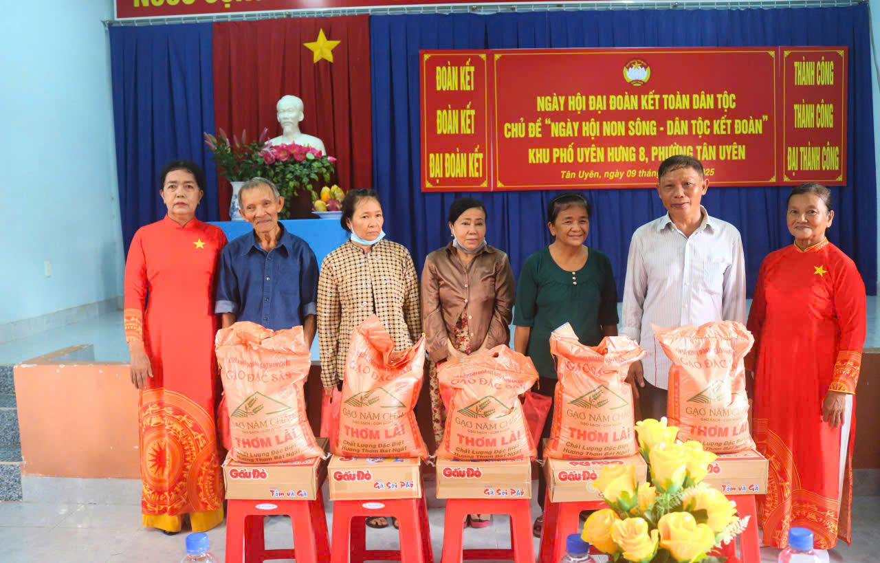 Cũng tại ngày hội, khu phố Uyên Hưng 8 trao giấy khen của Chủ tịch UBND phường Tân Uyên cho 05 hộ gia đình văn hóa tiêu biểu năm 2025; trao tặng 5 phần quà của phường Tân Uyên cho 5 hộ gia đình có hòan cảnh khó khăn, với trị giá 500.000 đồng/ phần nhân. Nhân dịp này, khu phố vận dộng nhà hảo tâm trao tặng 05 phần quà cho hộ có hoàn cảnh khó khăn, quà là các nhu yêu phẩm thiết yếu, với trị giá 350.000 đồng.