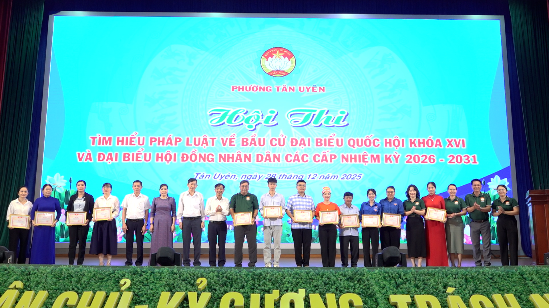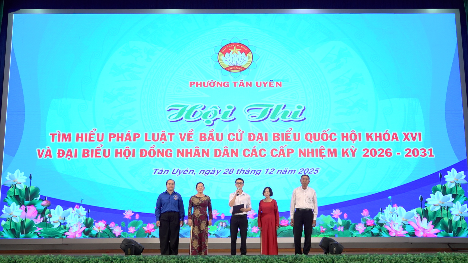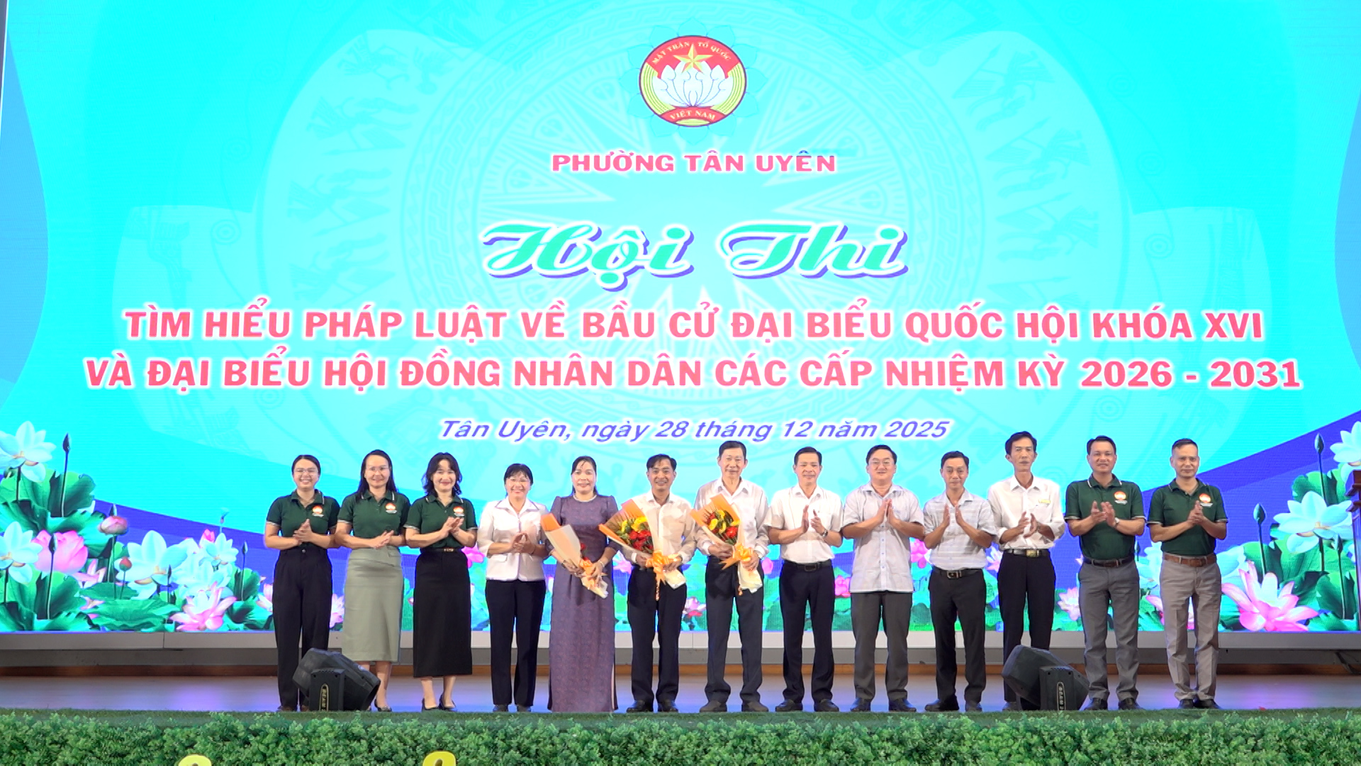 Ngày 28/12, Ban Thường trực Uỷ ban Mặt trận Tổ quốc Việt Nam phường Tân Uyên tổ chức Hội thi tìm hiểu pháp luật về bầu cử đại biểu Quốc hội khóa XVI và đại biểu Hội đồng nhân dân các cấp nhiệm kỳ 2026 - 2031 trên địa bàn phường Tân Uyên với chủ đề “Cử tri phường Tân Uyên sáng suốt lựa chọn - xây dựng chính quyền vững mạnh”.