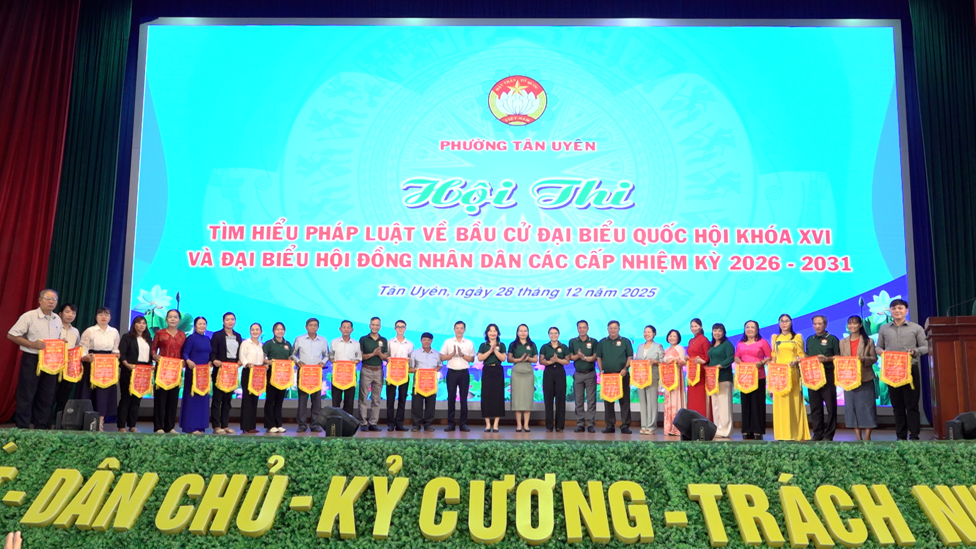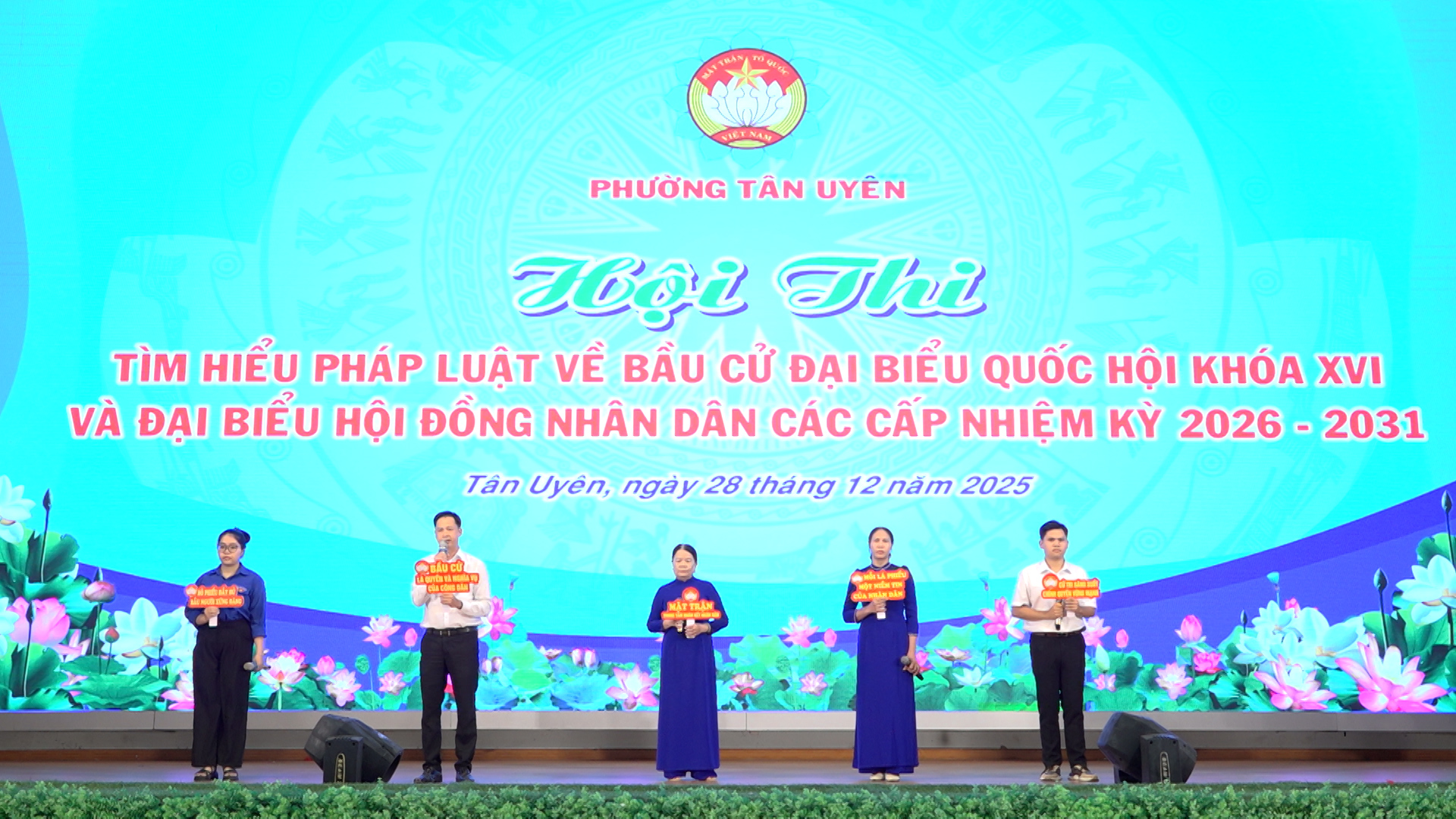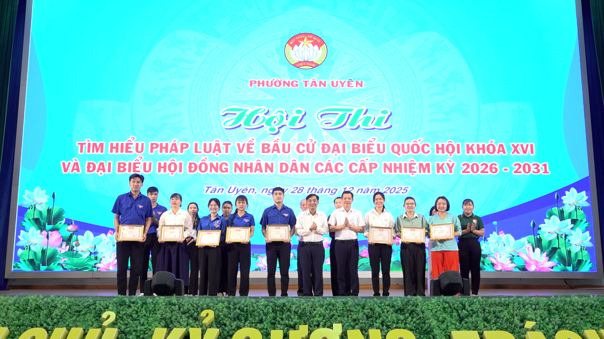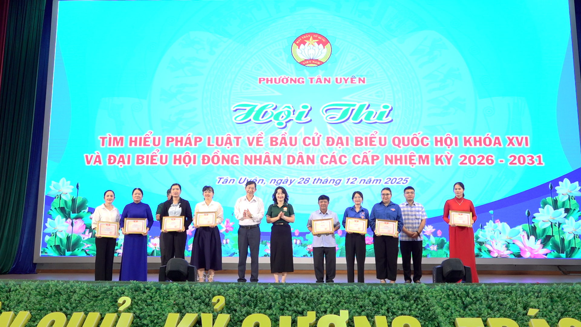 Ngày 28/12, Ban Thường trực Uỷ ban Mặt trận Tổ quốc Việt Nam phường Tân Uyên tổ chức Hội thi tìm hiểu pháp luật về bầu cử đại biểu Quốc hội khóa XVI và đại biểu Hội đồng nhân dân các cấp nhiệm kỳ 2026 - 2031 trên địa bàn phường Tân Uyên với chủ đề “Cử tri phường Tân Uyên sáng suốt lựa chọn - xây dựng chính quyền vững mạnh”.