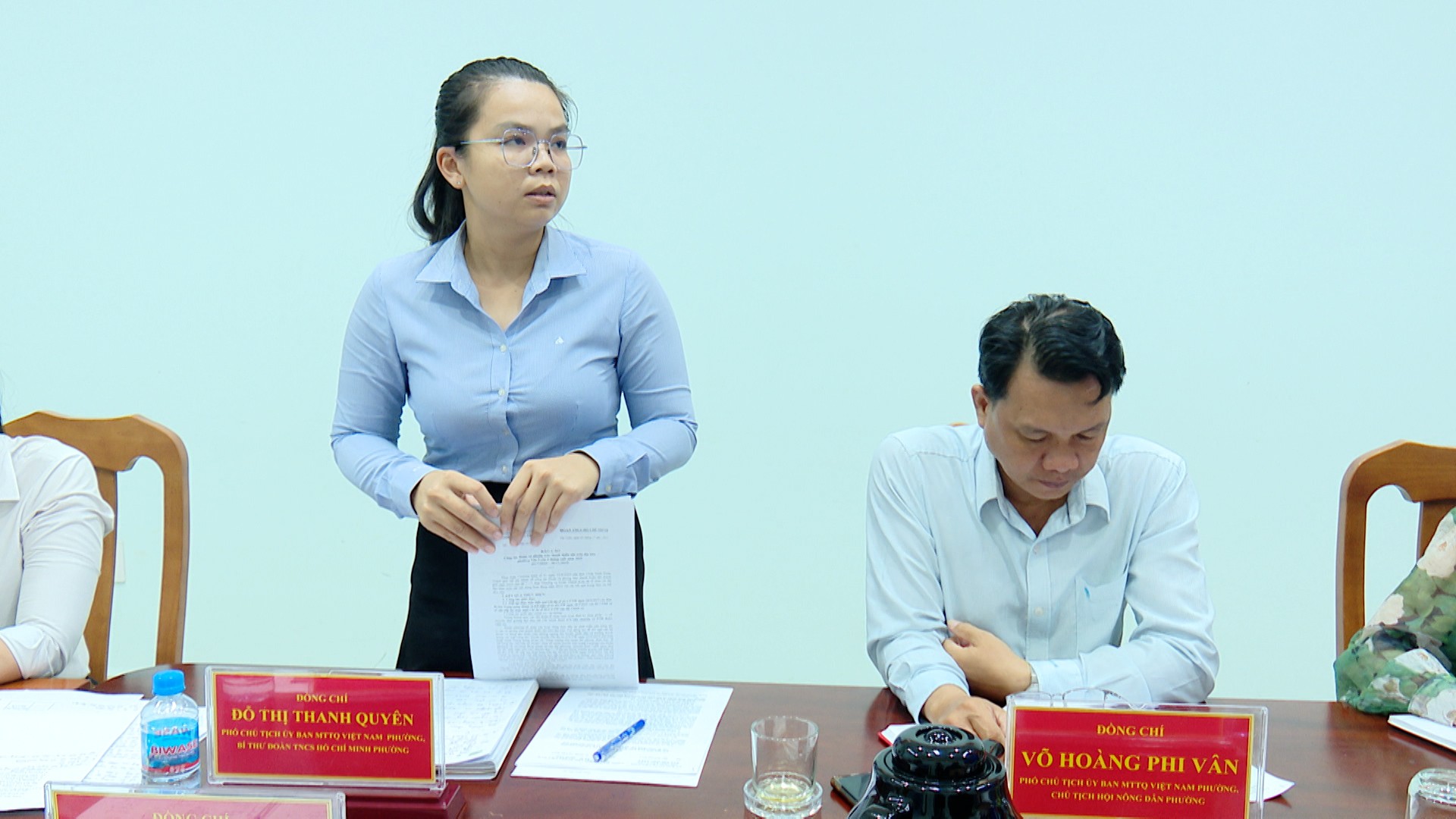 Phát biểu chỉ đạo tại buổi làm việc, đồng chí Lưu Hữu Duyên-Phó Bí thư Thường trực Đảng ủy, Giám đốc Trung tâm Chính trị phường ghi nhận và đánh giá cao những kết quả đạt được thời gian qua. Đồng chí đề nghị Ban thường trực Ủy ban MTTQVN phường chuẩn bị tốt việc tổ chức thực hiện mô hình cà phê sáng lắng nghe ý kiến nhân dân, trao suất ăn yêu thương và trao tặng học bổng cho học sinh vượt khó học tốt, trao tặng quà cho hộ khó khăn trên địa bàn phường. Thực hiện tốt công tác hiệp thương về bầu cử đại biểu HĐND các cấp nhiệm kỳ 2026-2031. Chuẩn bị, phối hợp tổ chức tốt Hội thi tìm hiểu về bầu cử Đại biểu Quốc hội và đại hiểu HĐND các cấp nhiệm kỳ 2026-2031. Mặt trận và các đoàn thể chuẩn bị chu đáo cho các hội nghị tổng kết năm 2025, trong đó chú trong đến công tác tổ chức tham luận, các nội dung tham luận phải phù hợp, tập trung vào những hạn chế, khó khăn để đưa ra giải pháp khắc phục trong năm 2026. Ủy ban MTTQ và các đoàn thể theo dõi nắm tình hình về các nguồn vốn vay trên địa bàn; quan tâm công tác mặt trận ở các khu phố trên địa bàn; chuẩn bị tốt các hoạt động chăm lo tết 2026. Giao Công đoàn phường chủ động nắm tình hình công nhân, chỉ trả lương, thưởng dịp Tết Nguyên đán; tổ chức các hoạt động chăm lo tết cho công nhân có hoàn cảnh khó khăn. Đoàn thanh niên, nghiên cứu giải pháp, đề xuất cách làm hay cho Ban Thường trực Ủy ban MTTQ Việt Nam phường để khắc phục những hạn chế liên quan đến chuyển đổi số. Tiếp tục thực hiện tốt Quy chế làm việc, phát huy tính đoàn kết trong nội bộ, hỗ trợ lẫn nhau trong công việc giúp cho cơ quan Mặt trận và các đoàn thể hoạt động mạnh mẽ hơn trong năm 2026…