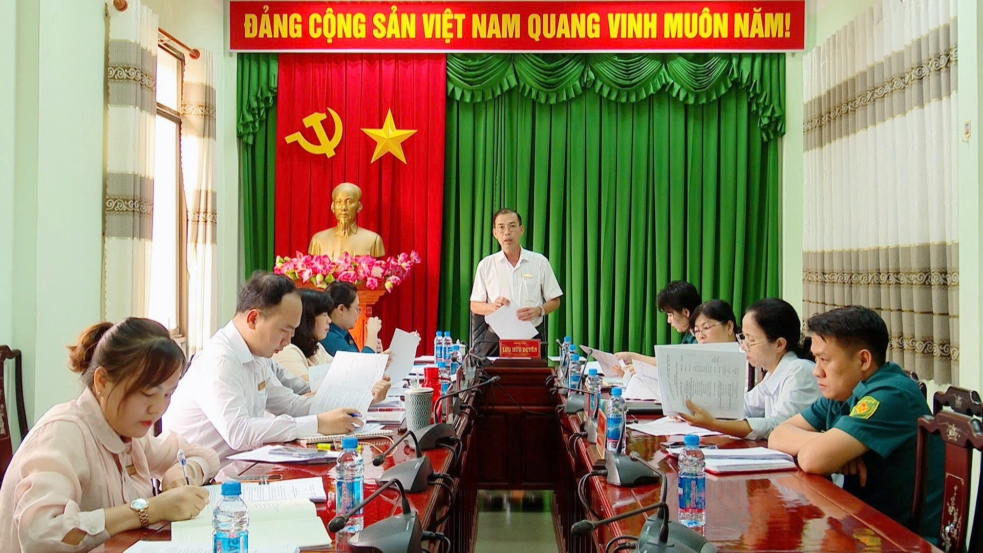 Chiều ngày 11/12/2025, đồng chí Lưu Hữu Duyên - Phó Bí thư Thường trực Đảng ủy, Giám đốc Trung tâm Chính trị phường Tân Uyên chủ trì buổi làm việc với các cơ quan tham gia nhận xét, đánh giá, đề xuất mức xếp loại đối với tập thể lãnh đạo, tổ chức đảng và cá nhân năm 2025. Cùng dự có lãnh đạo Ban Xây dựng Đảng, Uỷ ban Kiểm tra, Văn phòng Đảng uỷ; Thường trực HĐND, UBND, Ủy ban MTTQ Việt Nam phường; Công an, Quân sự phường.