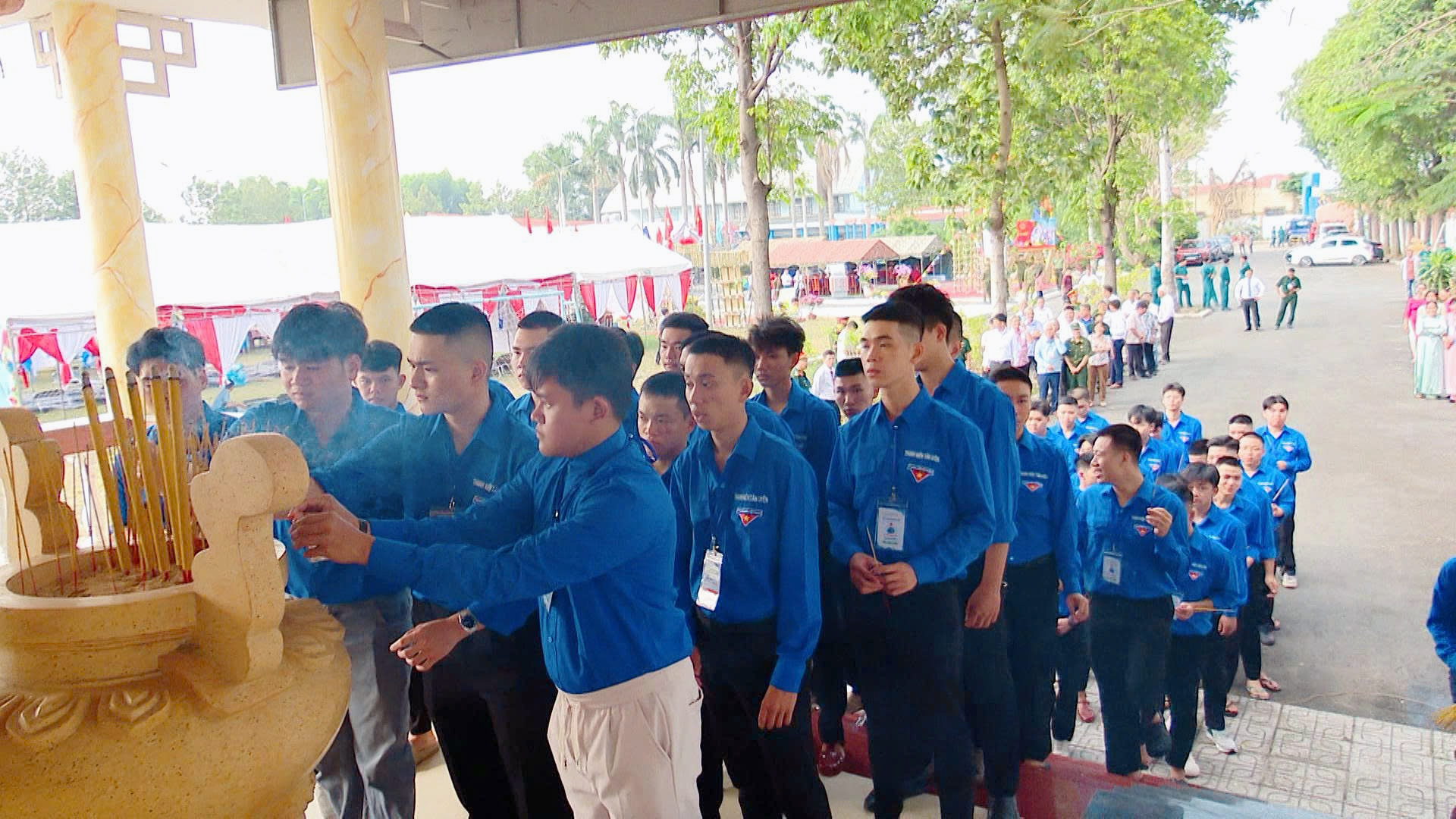 Trong không khí tự hào của những ngày hội tòng quân, các đại biểu cùng cán bộ, chiến sĩ và đoàn viên thanh niên đã dành phút mặc niệm, bày tỏ lòng tri ân sâu sắc tưởng nhớ Chủ tịch Hồ Chí Minh vĩ đại, các anh hùng, liệt sĩ, đồng chí, đồng bào đã hy sinh vì độc lập, tự do của Tổ quốc. Những đoá hoa tươi thắm, nén hương thơm được dâng lên Bia ghi danh thể hiện đạo lý “Uống nước nhớ nguồn”, khẳng định sự tiếp nối truyền thống cách mạng của quê hương Tân Uyên. Trước anh linh các anh hùng liệt sĩ, lãnh đạo phường cùng thế hệ trẻ đã bày tỏ quyết tâm tiếp tục phát huy truyền thống cách mạng, ra sức xây dựng quê hương ngày càng phát triển, giữ vững quốc phòng - an ninh. Đặc biệt, 72 thanh niên chuẩn bị nhập ngũ đã thể hiện tinh thần sẵn sàng nhận và hoàn thành tốt nhiệm vụ được giao, xứng đáng với niềm tin yêu, kỳ vọng của gia đình và lãnh đạo, nhân dân địa phương.