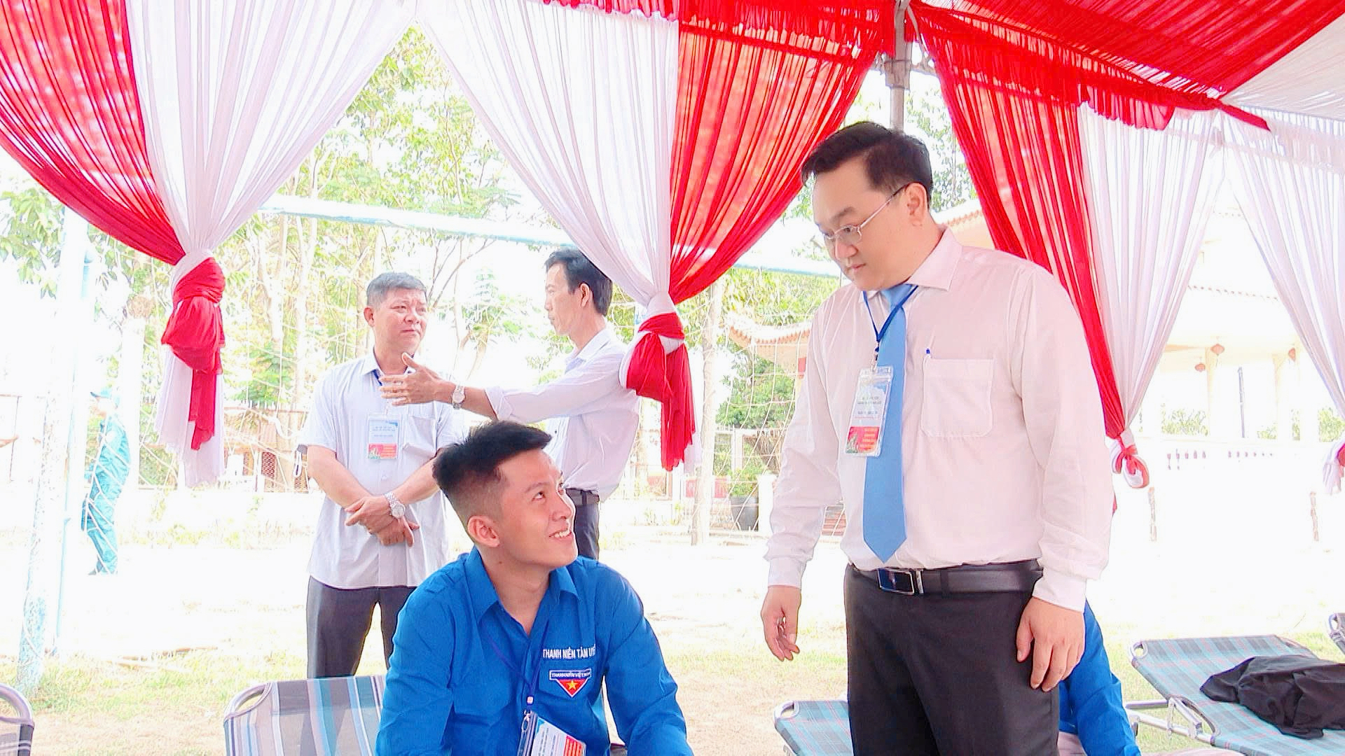 Ngay sau lễ viếng, lãnh đạo phường đã đến từng tiểu trại thăm hỏi, động viên, chụp ảnh lưu niệm và tặng 72 phần quà cho thanh niên. Các đồng chí lãnh đạo phườngân cần chia sẻ, nắm bắt tâm tư, tình cảm của từng tân binh, gửi gắm niềm tin và kỳ vọng vào lớp thanh niên tiếp nối truyền thống quê hương, tiếp thêm động lực để các thanh niên vững vàng tâm thế, tự tin bước vào môi trường rèn luyện mới, quyết tâm hoàn thành nghĩa vụ thiêng liêng đối với Tổ quốc.
