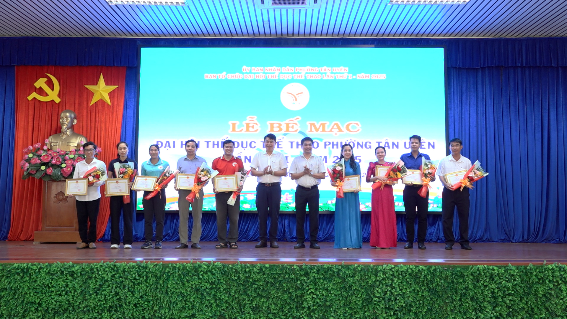 Dịp này, 09 tập thể, 26 cá nhân được Chủ tịch UBND phường Tân Uyên và Ban tổ chức Đại hội TDTT phường lần thứ I, năm 2025 khen thưởng vì đã có thành tích xuất sắc trong công tác tổ chức Đại hội Thể dục thể thao phường Tân Uyên lần thứ I, năm 2025. Đại hội TDTT phường Tân Uyên lần thứ I, năm 2025 khép lại thành công tốt đẹp, để lại nhiều ấn tượng sâu sắc, góp phần lan tỏa tinh thần rèn luyện thể thao, tăng cường khối đại đoàn kết toàn dân và tạo nền tảng cho phong trào TDTT của phường tiếp tục phát triển.