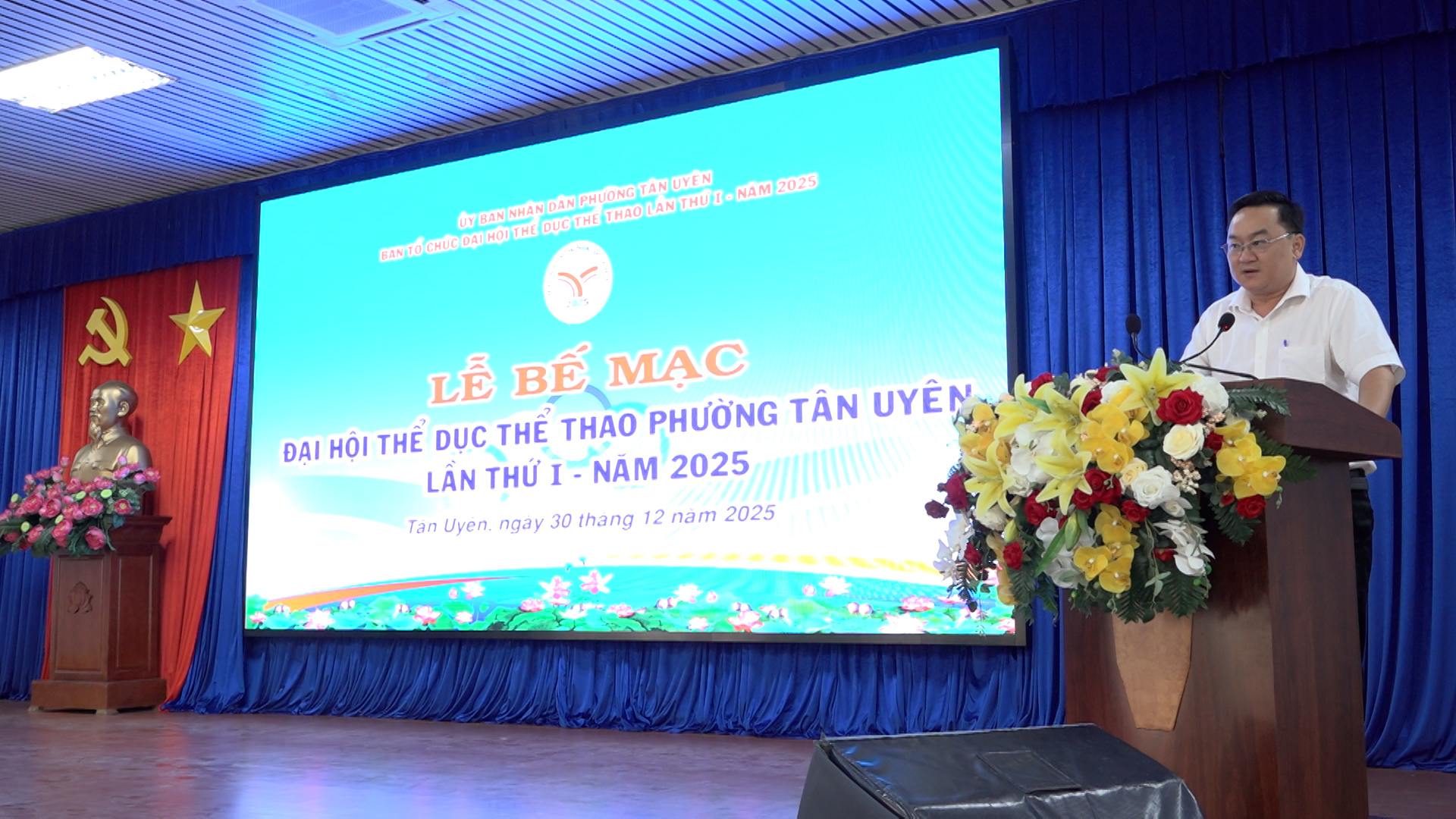 Phát biểu tại Lễ bế mạc, ông Lê Duy Hậu – Phó Chủ tịch UBND phường, Trưởng Ban Tổ chức Đại hội TDTT phường Tân Uyên lần thứ I, năm 2025 khẳng định Đại hội là sự kiện quan trọng, đánh dấu bước phát triển mới của phong trào thể dục thể thao địa phương, góp phần khơi dậy tinh thần đoàn kết, năng động và rèn luyện sức khỏe trong Nhân dân. Đồng thời, ông biểu dương sự nỗ lực của Ban Chỉ đạo, Ban Tổ chức, các cơ quan, đơn vị, đội ngũ huấn luyện viên, trọng tài và sự tham gia tích cực của các vận động viên. Trong thời gian tới, UBND phường mong tiếp tục nhận được sự quan tâm, phối hợp và hưởng ứng của các cấp, các ngành và Nhân dân để phong trào TDTT ngày càng phát triển, góp phần xây dựng phường Tân Uyên văn minh, nghĩa tình.