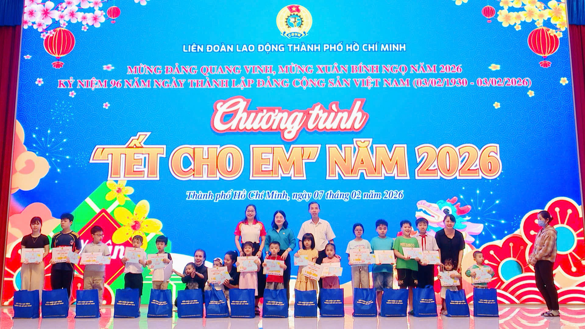 Tại Chương trình “Tết cho em” năm 2026, LĐLĐ TP.Hồ Chí Minh đã trao tặng 100 phần quà cho Con đoàn viên, người lao động bị bệnh hiểm nghèo, trẻ bệnh tăng động, tự kỷ, Con bị khuyết tật, mồ côi bị ảnh hưởng dịch bệnh Covid-19 dưới 16 tuổi, Con đoàn viên, người lao động có hoàn cảnh khó khăn dưới 16 tuổi ở 13 Công đoàn xã, phường gồm: Tân Uyên, Tân Khánh, Tân Hiệp, Vĩnh Tân, Bình Cơ, Bình Dương, Thủ Dầu Một, Hòa Lợi, Chánh Hiệp, Phú An, xã Bắc Tân Uyên và xã Thường Tân. Mỗi phần quà gồm 1 triệu đồng tiền mặt và phần quà trị giá 200 ngàn đồng.