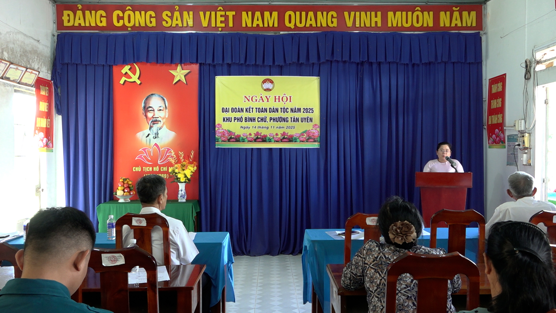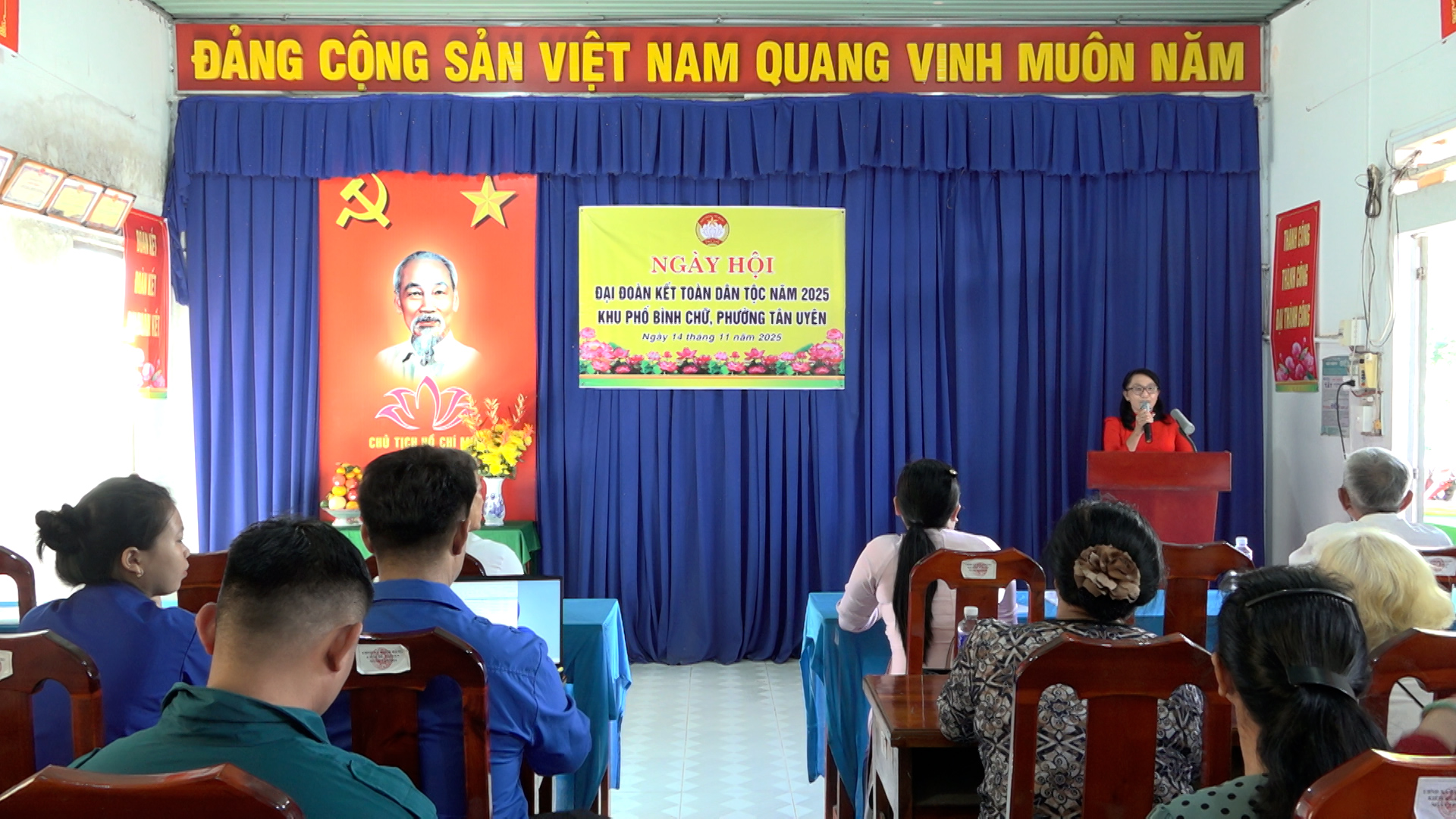 Trong không khí hân hoan chào mừng kỷ niệm 95 năm Ngày truyền thống Mặt trận Tổ quốc Việt Nam (18/11/1930 – 18/11/2025), sáng ngày 14/11, tại văn phòng khu phố Bình Chữ, phường Tân Uyên đã diễn ra Ngày hội Đại đoàn kết toàn dân tộc năm 2025. Đây là dịp để cán bộ và nhân dân khu phố cùng nhìn lại chặng đường đoàn kết, xây dựng và phát triển, đồng thời tăng cường gắn bó cộng đồng, phát huy sức mạnh khối đại đoàn kết toàn dân.