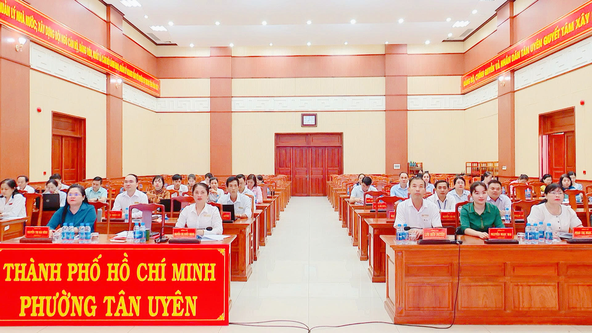Tại điểm cầu trực tuyến phường Tân Uyên, dự hội nghị có đồng chí Nguyễn Thị Tuyết Nhung - Bí thư Đảng uỷ, Chủ tịch Hội đồng nhân dân phường, đồng chí Lưu Hữu Duyên - Phó Bí thư Thường trực Đảng uỷ, Giám đốc Trung tâm Chính trị phường cùng các đồng chí trong Ban Thường vụ Đảng uỷ, Ban Chấp hành Đảng bộ phường, các cán bộ, công chức các ban, ngành, đoàn thể phường.