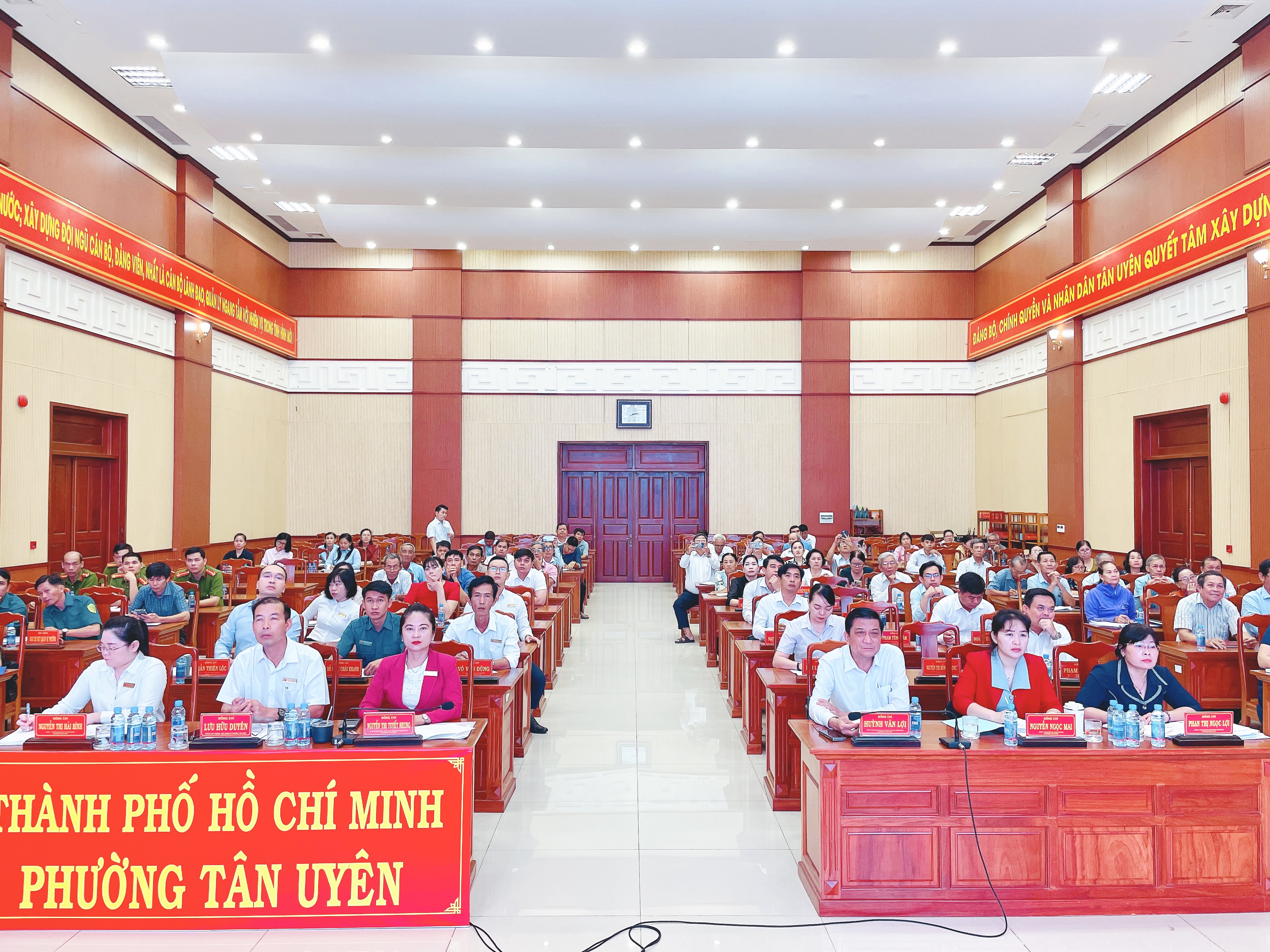 Tại điểm cầu phường Tân Uyên, tham dự có đồng chí Nguyễn Thị Tuyết Nhung, Bí thư Đảng uỷ, Chủ tịch Hội đồng nhân dân phường; đồng chí Lưu Hữu Duyên, Phó Bí thư Thường trực Đảng ủy, Giám đốc Trung tâm Chính trị phường; đồng chí Huỳnh Văn Lợi, Phó Bí thư Đảng ủy, Chủ tịch UBND phường. Cùng dự có Thường trực HĐND phường; lãnh đạo UBND phường; Thành viên Ban Chỉ đạo bầu cử theo Quyết định số 117-QĐ/ĐU, ngày 18/9/2025 của Ban Thường vụ Đảng ủy phường; Thành viên ủy ban bầu cử theo Quyết định số 1442/QĐ-UBND, ngày 12/11 của UBND phường; Ban Thường trực ủy ban MTTQ Việt Nam phường; Chỉ huy trưởng, Phó Chỉ huy trưởng Ban CHQS phường; Trưởng, Phó Trưởng Công an phường; Lãnh đạo các Ban của HĐND phường; Trưởng, Phó các Ban, Phòng chuyên môn, đơn vị sự nghiệp trực thuộc UBND phường; Bí thư Chi bộ, Trưởng Khu phố, Trưởng Ban Công tác Mặt trận 23 khu phố; Công chức phụ trách tham mưu công tác bầu cử thuộc các cơ quan, đơn vị.