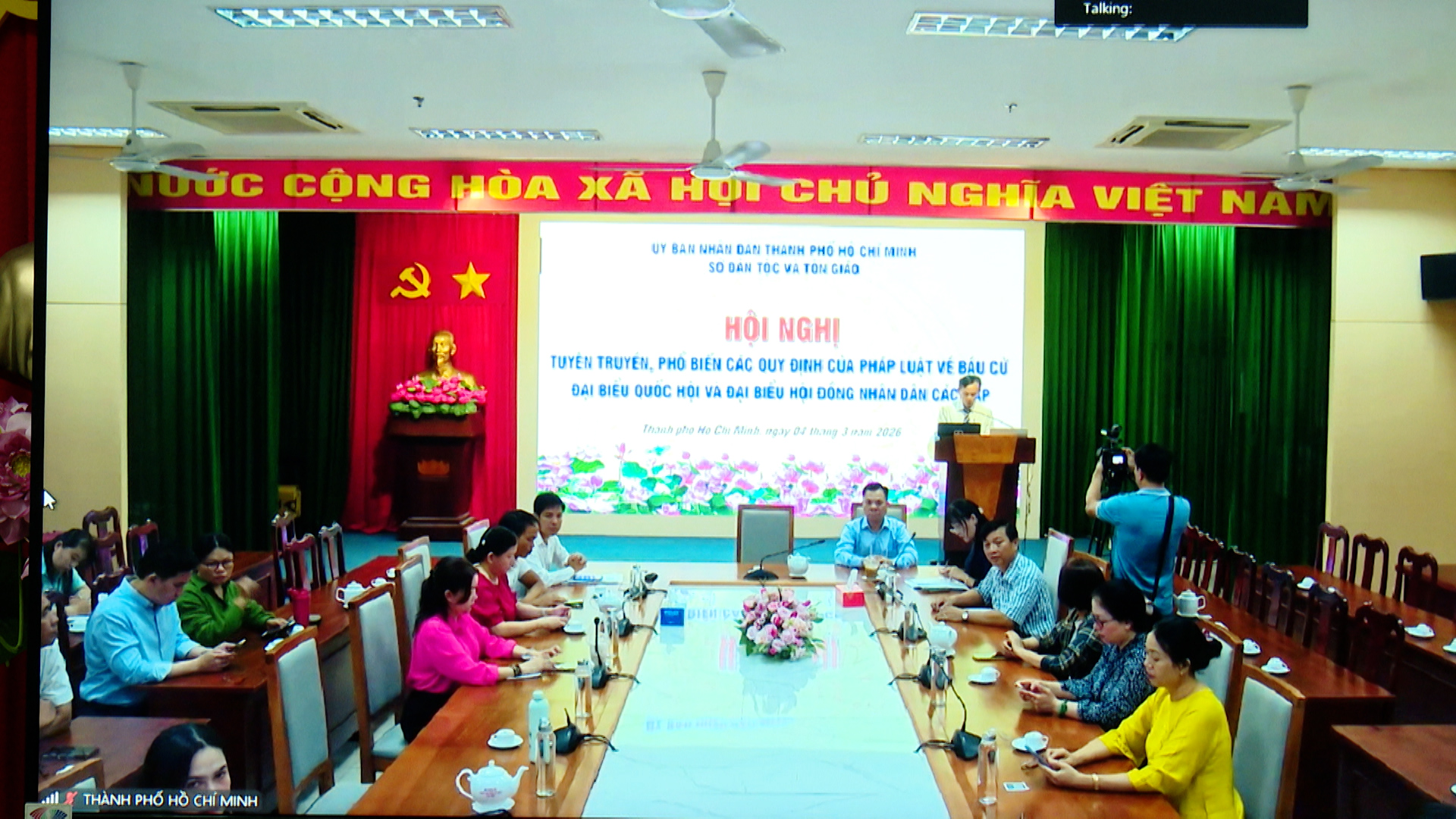 Sáng ngày 4/3, Sở Dân tộc và Tôn giáo TP.Hồ Chí Minh tổ chức Hội nghị tuyên truyền, phổ biến các quy định của pháp luật về bầu cử đại biểu Quốc hội và đại biểu HĐND các cấp nhiệm kỳ 2026-2031 cho đội ngũ cán bộ cơ sở và các vị chức sắc, chức việc, người có uy tín trên địa bàn Thành phố. Ông Dương Văn Hạnh, Phó giám đốc Sở Dân tộc và Tôn giáo thành phố chủ trì hội nghị. Hội nghị được tổ chức theo hình thức trực tiếp kết hợp trực tuyến tại các phường, xã, đặc khu.