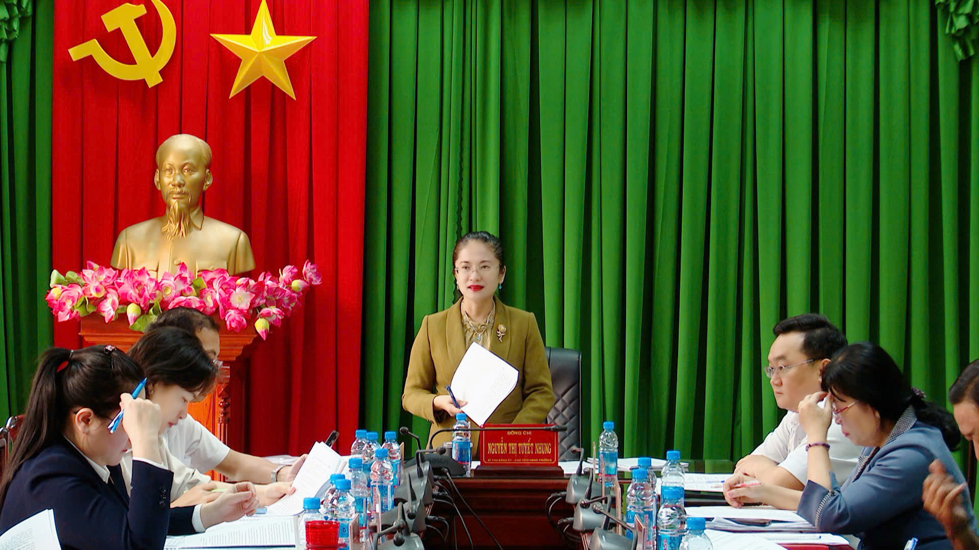 Đồng chí Nguyễn Thị Tuyết Nhung - Bí thư Đảng ủy, Chủ tịch Hội đồng nhân dân phường, Trưởng Ban Chỉ đạo về đột phá phát triển khoa học công nghệ, đổi mới sáng tạo và chuyển đổi số phường chủ trì cuộc họp. Cùng dự có đồng chí Lưu Hữu Duyên - Phó Bí thư Thường trực Đảng uỷ, Giám đốc Trung tâm Chính trị phường, các đồng chí trong Ban Thường vụ Đảng uỷ, các thành viên trong Ban Chỉ đạo về đột phá phát triển khoa học công nghệ, đổi mới sáng tạo và chuyển đổi số.
