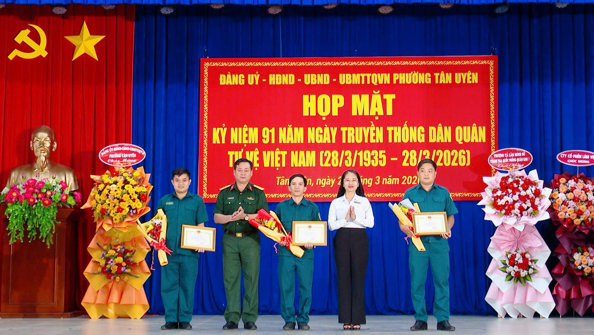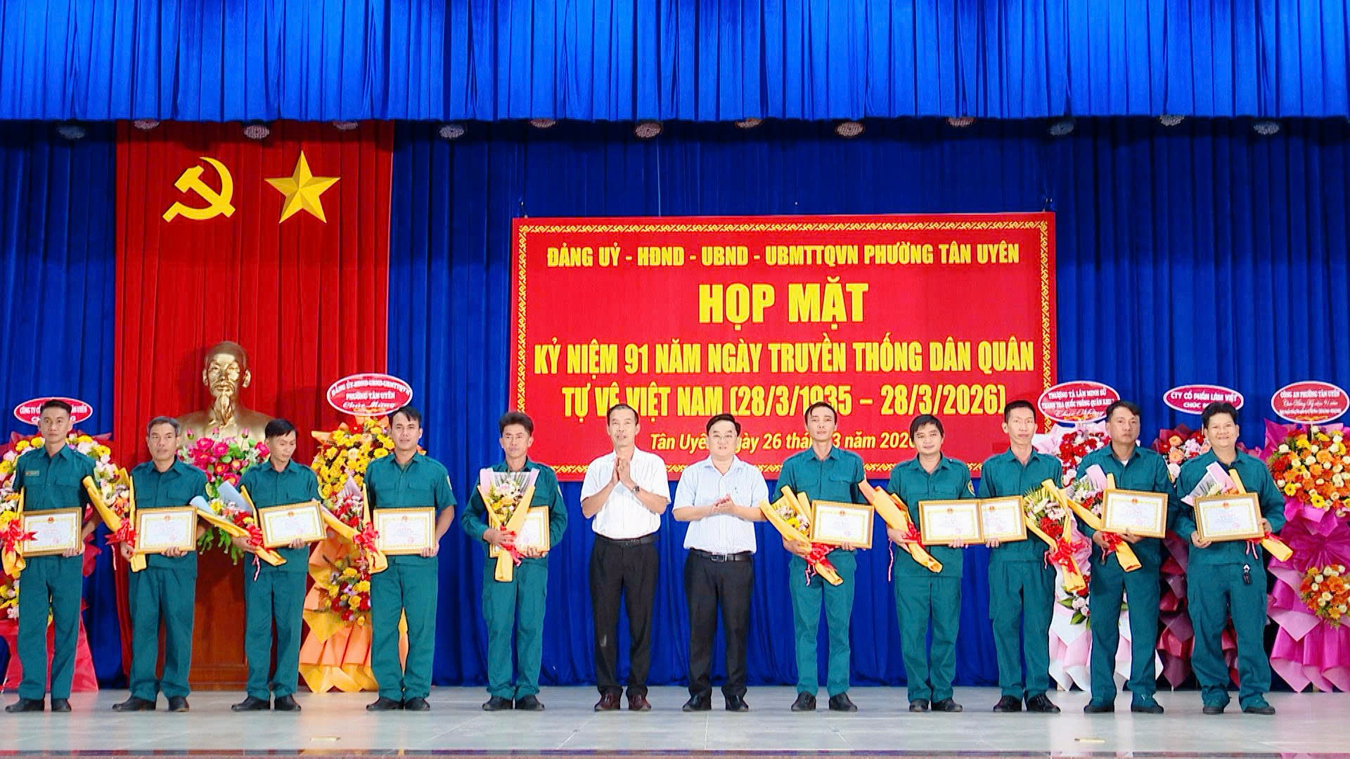 Chiều 26/3, tại hội trường Ban Chỉ huy quân sự phường, Đảng ủy-Hội đồng nhân dân-Ủy ban nhân dân-Ủy ban Mặt trận tổ quốc Việt Nam phường Tân Uyên tổ chức họp mặt kỷ niệm 91 năm Ngày truyền thống Dân quân tự vệ Việt Nam (28/3/1935 - 28/3/2026).