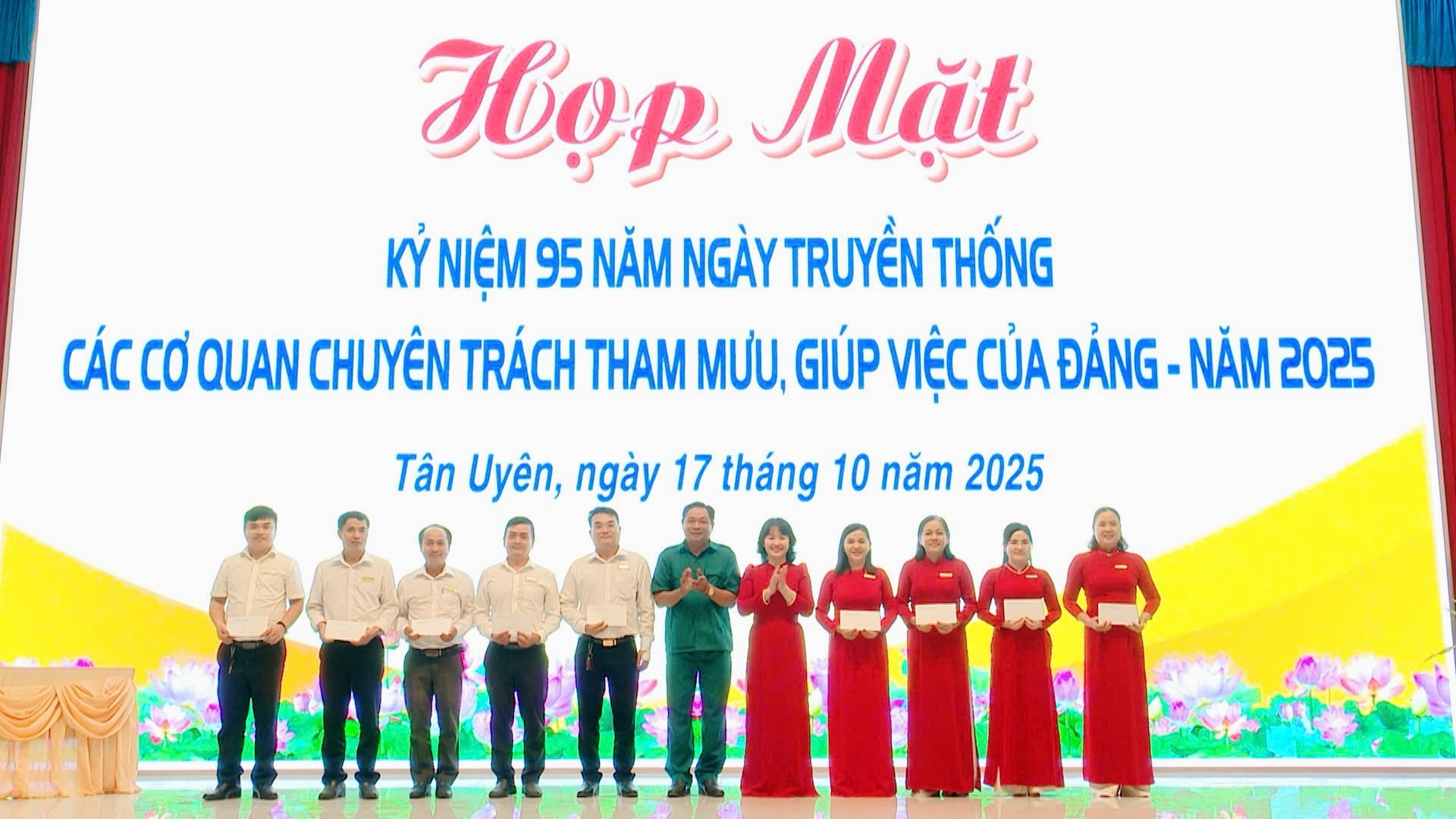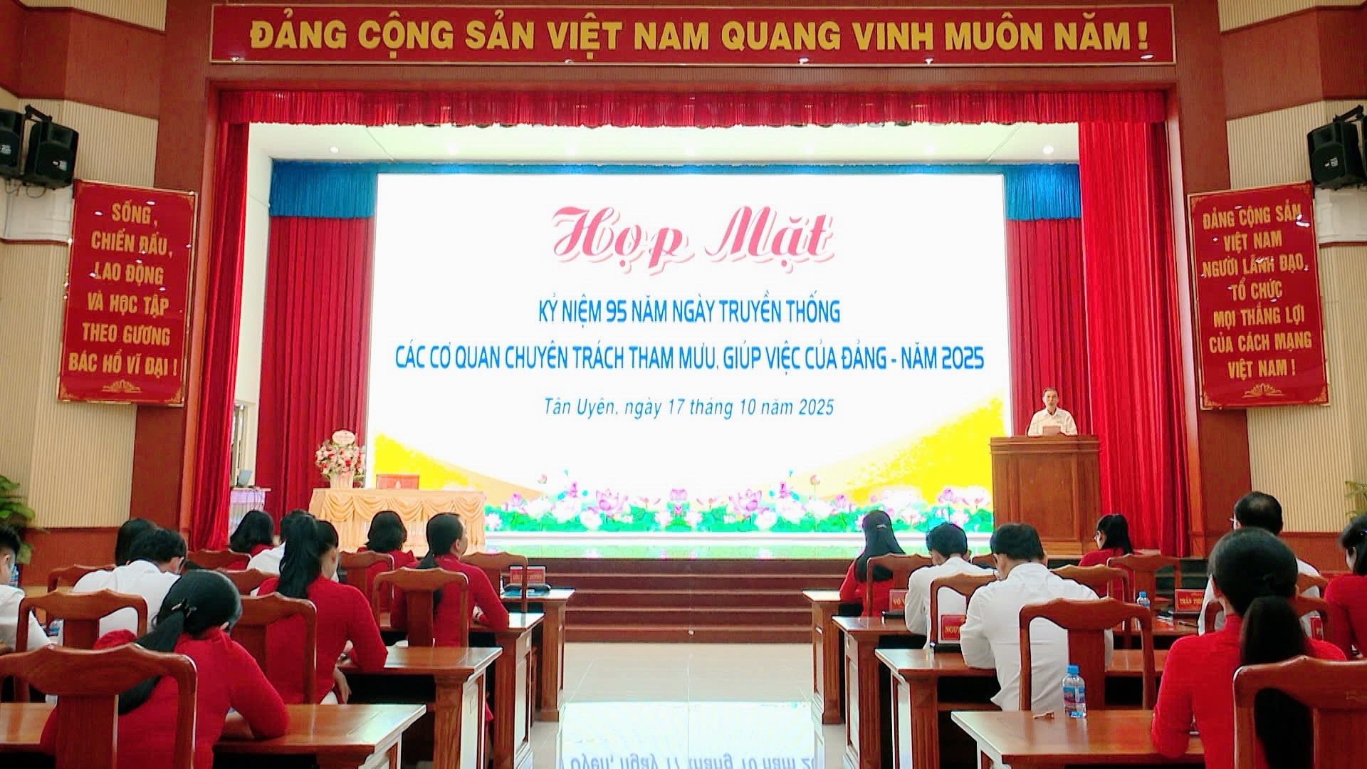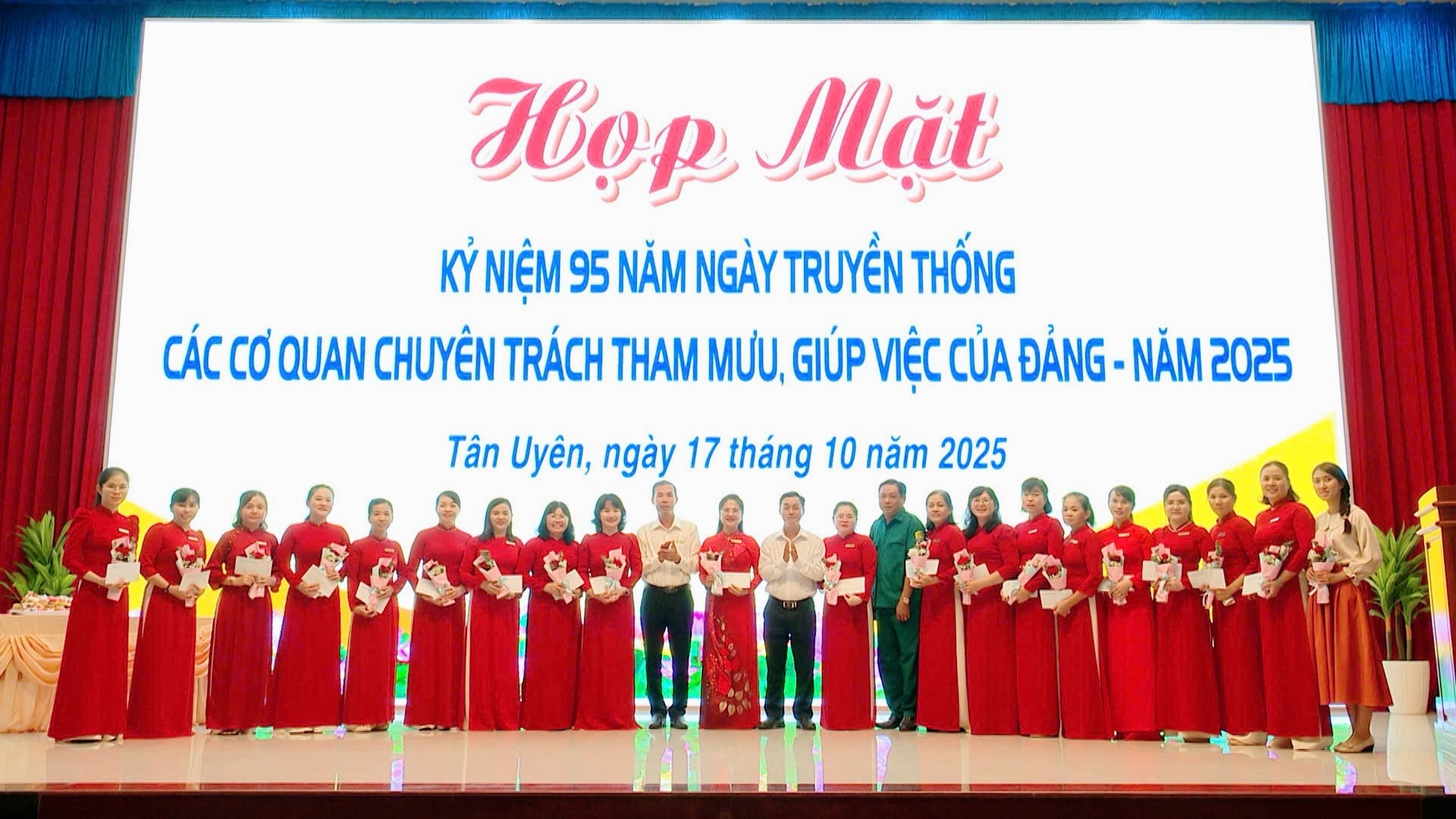 Nhằm ôn lại lịch sử, truyền thống vẻ vang của các cơ quan chuyên trách tham mưu, giúp việc cấp ủy trong sự nghiệp cách mạng của Đảng và dân tộc: 95 năm Ngày truyền thống ngành Tuyên giáo (01/8/1930 - 01/8/2025), 95 năm Ngày truyền thống ngành Tổ chức xây dựng Đảng (14/10/1930 - 14/10/2025); 95 năm Ngày truyền thống công tác Dân vận của Đảng (15/10/1930 -15/10/2025); 95 năm Ngày truyền thống Văn phòng cấp ủy (18/10/1930 - 18/10/2025); 77 năm Ngày truyền thống ngành Kiểm tra Đảng (16/10/1948 - 16/10/2025), chiều ngày 17/10/2025, tại Hội trường Đảng uỷ phường Tân Uyên, Ban Thường vụ Đảng ủy phường tổ chức Họp mặt kỷ niệm Ngày truyền thống các cơ quan chuyên trách tham mưu, giúp việc Đảng ủy năm 2025.