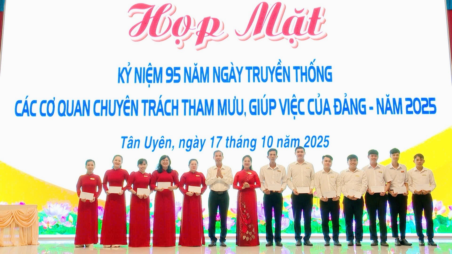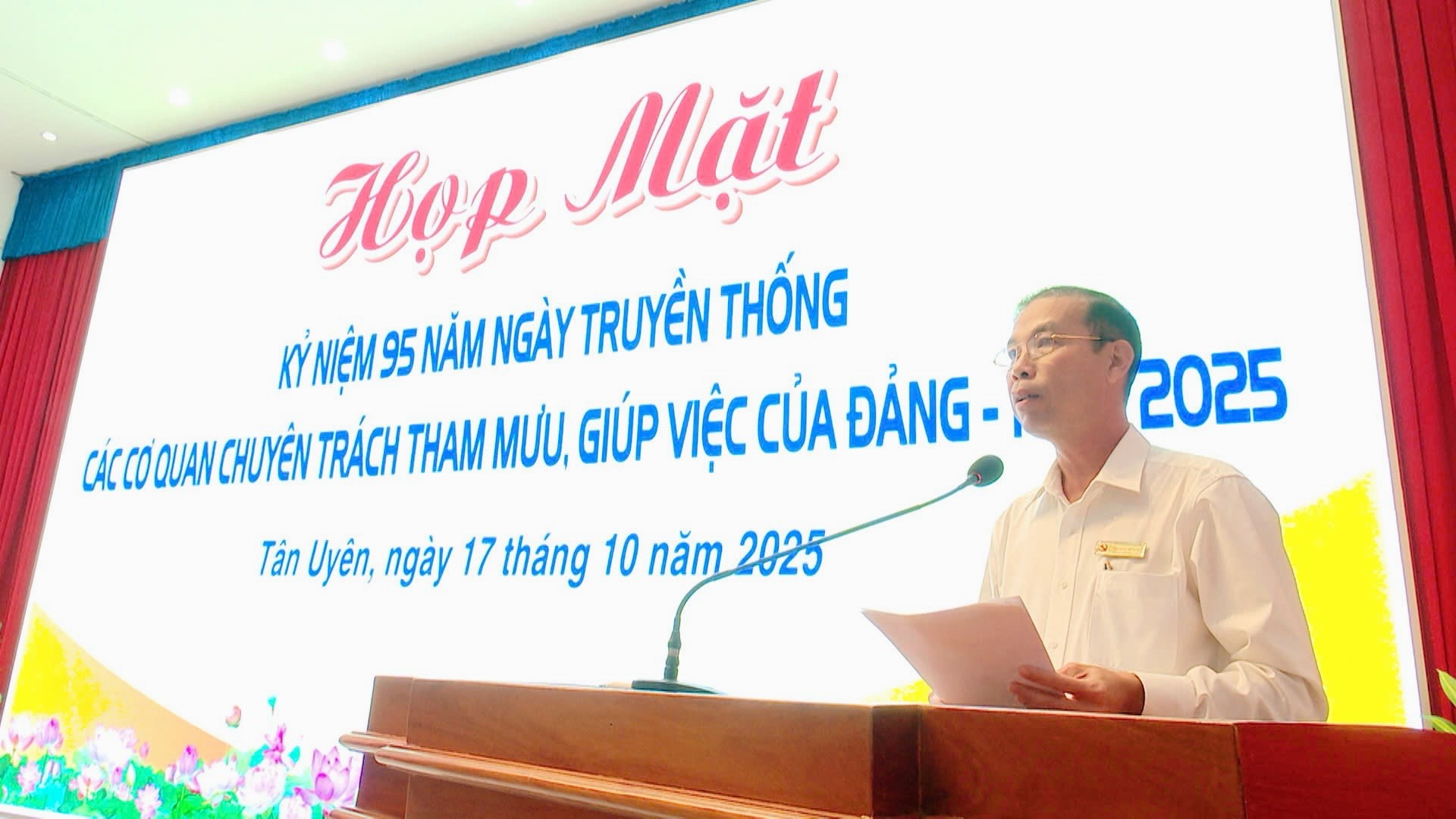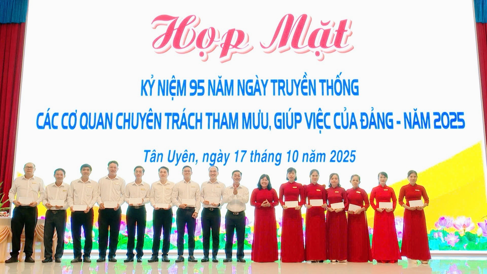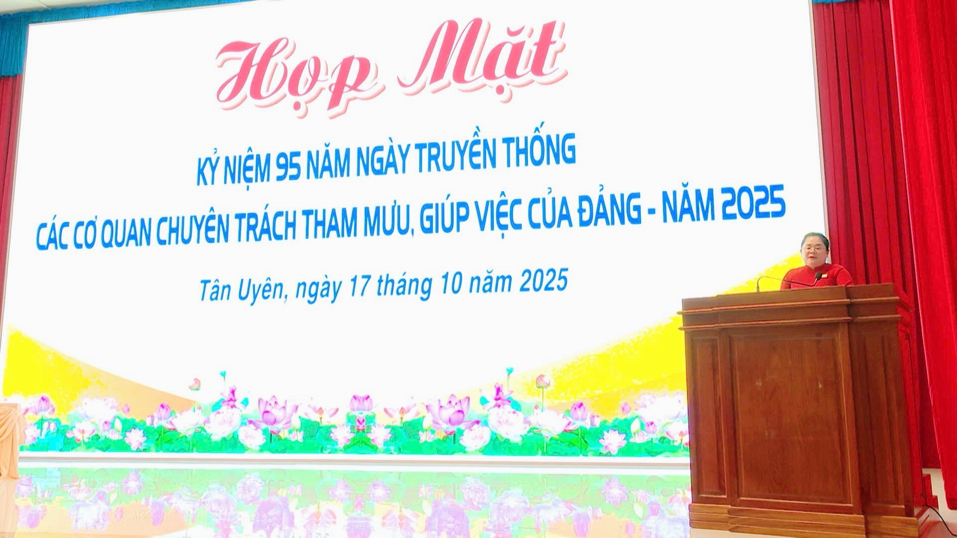 Nhằm ôn lại lịch sử, truyền thống vẻ vang của các cơ quan chuyên trách tham mưu, giúp việc cấp ủy trong sự nghiệp cách mạng của Đảng và dân tộc: 95 năm Ngày truyền thống ngành Tuyên giáo (01/8/1930 - 01/8/2025), 95 năm Ngày truyền thống ngành Tổ chức xây dựng Đảng (14/10/1930 - 14/10/2025); 95 năm Ngày truyền thống công tác Dân vận của Đảng (15/10/1930 -15/10/2025); 95 năm Ngày truyền thống Văn phòng cấp ủy (18/10/1930 - 18/10/2025); 77 năm Ngày truyền thống ngành Kiểm tra Đảng (16/10/1948 - 16/10/2025), chiều ngày 17/10/2025, tại Hội trường Đảng uỷ phường Tân Uyên, Ban Thường vụ Đảng ủy phường tổ chức Họp mặt kỷ niệm Ngày truyền thống các cơ quan chuyên trách tham mưu, giúp việc Đảng ủy năm 2025.