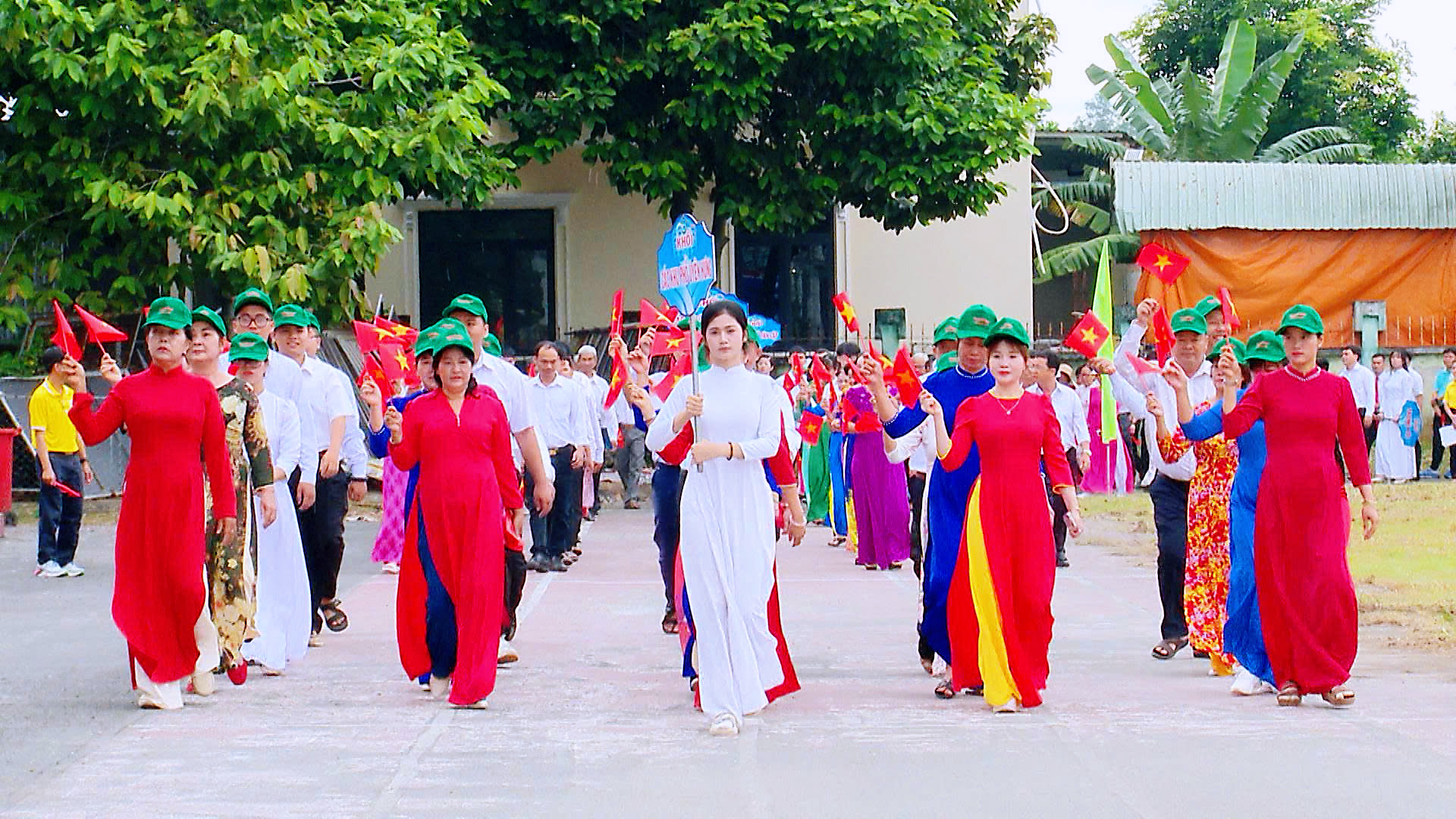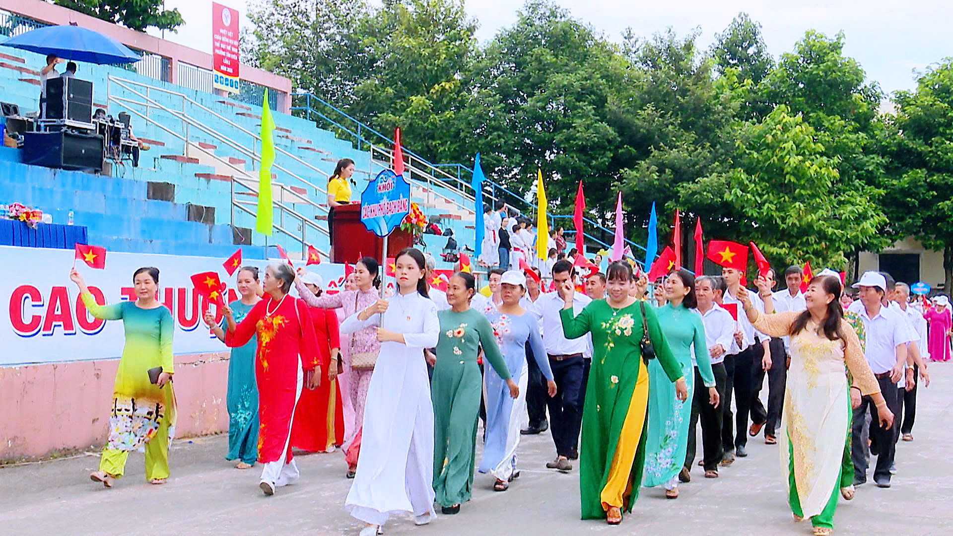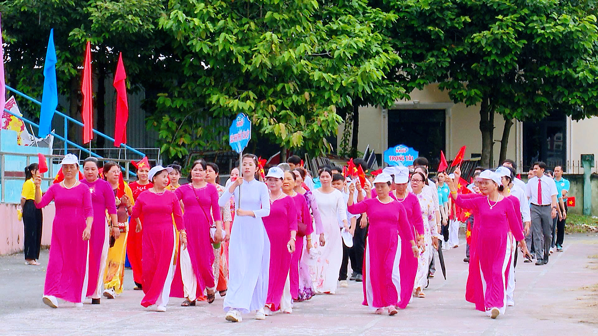 Khối Hồng kỳ tạo nên điểm nhấn ấn tượng khi những lá cờ đỏ rực đồng loạt chuyển động theo đội hình thống nhất, tượng trưng cho sức mạnh đoàn kết và tinh thần thi đua quyết thắng hướng về thành công của Đại hội. 12 đội hình khối đông gồm: đoàn viên thanh niên, lực lượng vũ trang, cán bộ, công chức các cơ quan, giáo viên, học sinh các trường học, nhân dân các khu phố lần lượt tiến qua lễ đài trong khí thế phấn khởi. Những bước chân nhịp nhàng cùng màu sắc của cờ hoa rực rỡ đã khắc họa sinh động hình ảnh cộng đồng phường Tân Uyên đoàn kết, kỷ luật, quyết tâm hưởng ứng phong trào thể dục thể thao và xây dựng đời sống văn hóa lành mạnh trong giai đoạn mới.