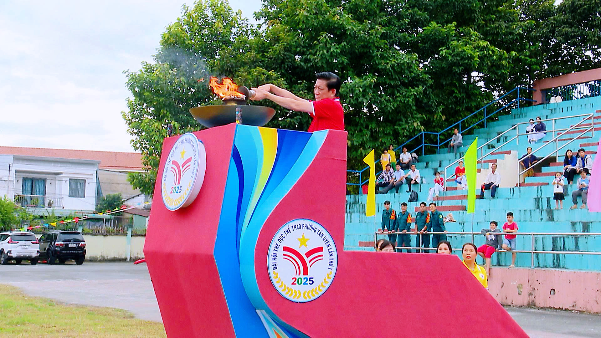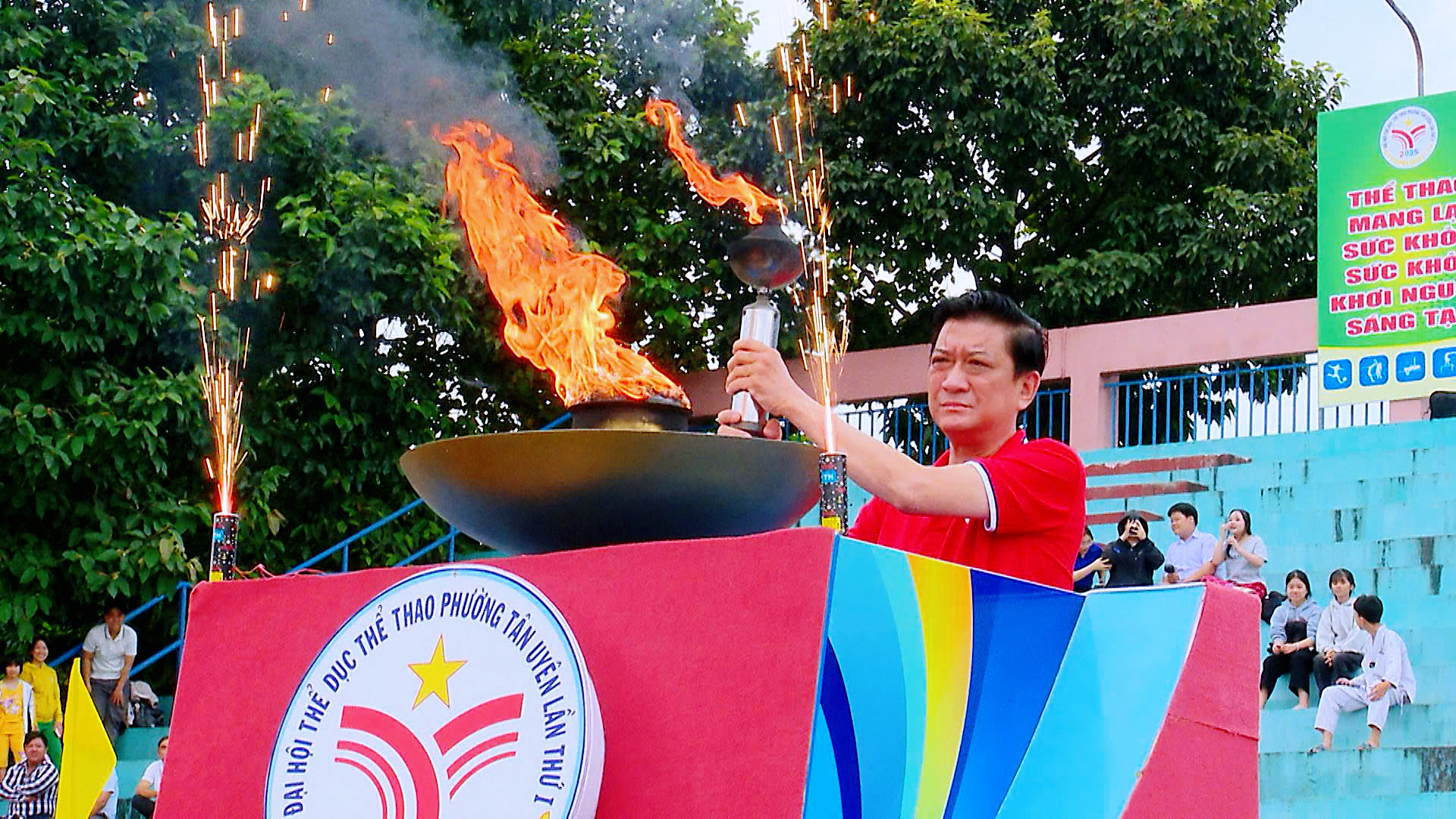 Tiếp nhận ngọn đuốc từ các vận động viên, ông Huỳnh Văn Lợi - Chủ tịch UBND phường Tân Uyên, Trưởng Ban Chỉ đạo Đại hội đã thực hiện nghi thức châm đuốc khai mạc. Trước đó, từ Bia 303 - nơi khắc tên những người con anh dũng đã hy sinh cả cuộc đời cho đất nước và quê hương Tân Uyên, các vận động viên tiêu biểu của phong trào thể dục thể thao phường rước đuốc qua các tuyến đường về sân vận động, mang theo ngọn lửa của ý chí, sức mạnh và khát vọng vươn lên của nhân dân địa phương. Ngọn đuốc sẽ được thắp sáng trong suốt quá trình Đại hội diễn ra.