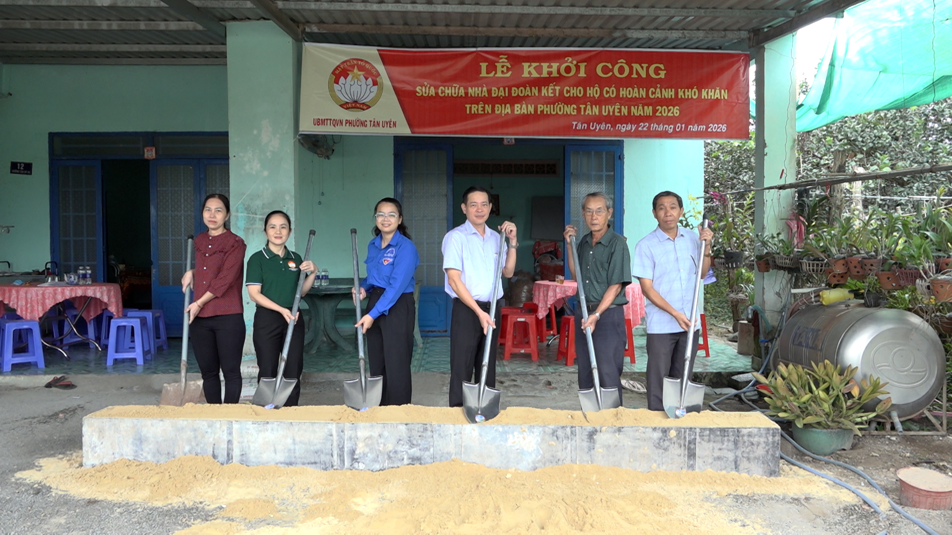 Thiết thực lập thành tích chào mừng thành công Đại hội đại biểu Đảng bộ Thành phố Hồ Chí Minh và Đại hội đại biểu UBMTTQVN Thành phố Hồ Chí Minh lần thứ I, nhiệm kỳ 2025 - 2030, chào mừng bầu cử đại biểu Quốc hội và đại biểu HĐND các cấp nhiệm kỳ 2026 - 2031. Sáng ngày 22/01, UBMTTQVN phường Tân Uyên tổ chức lễ khởi công sữa chữa nhà ở cho hộ gia đình bà Ngô Thị Loan là hộ có hoàn cảnh khó khăn ở khu phố Vườn Vũ, phường Tân Uyên với kinh phí là 50.000.000 đồng.