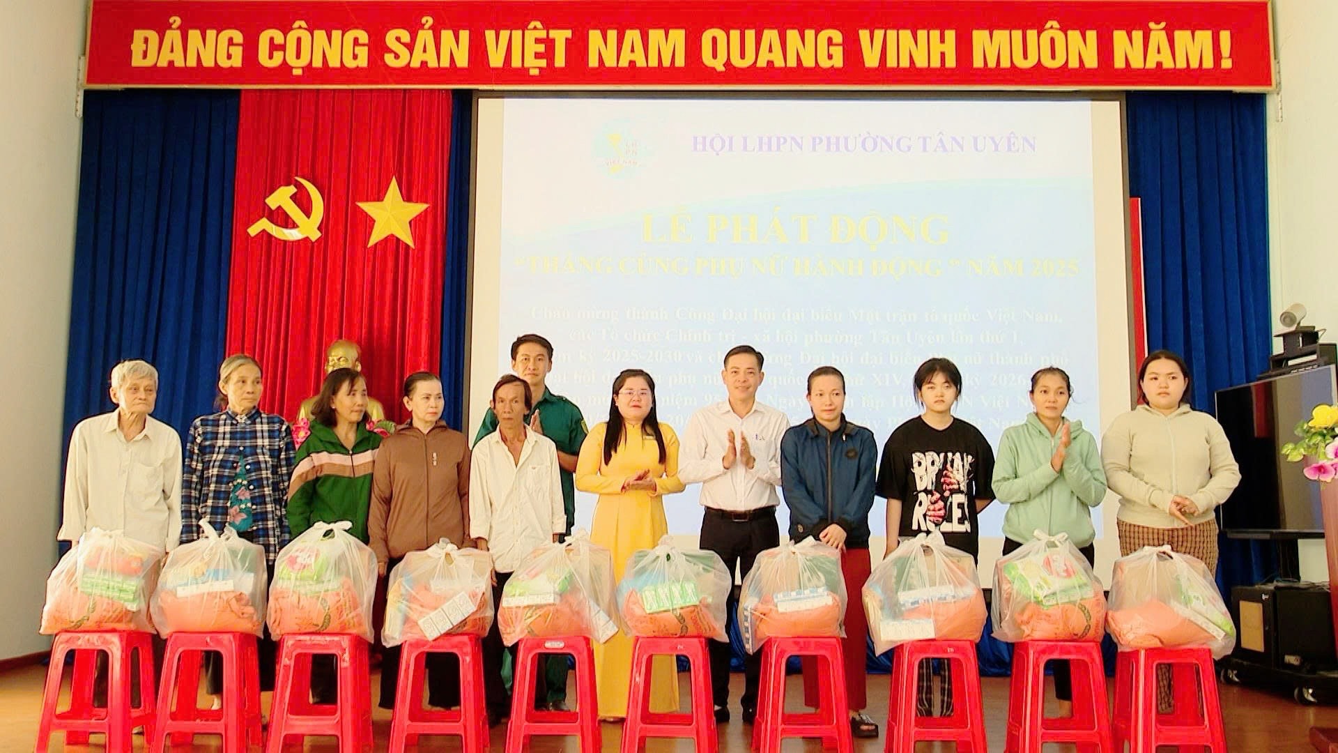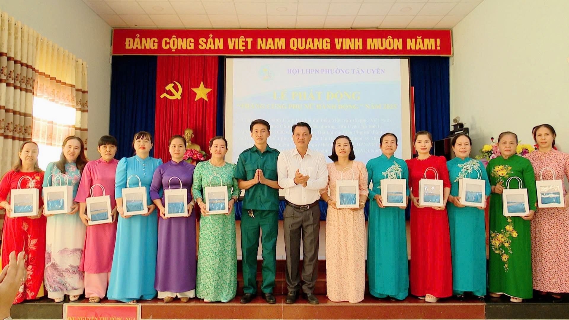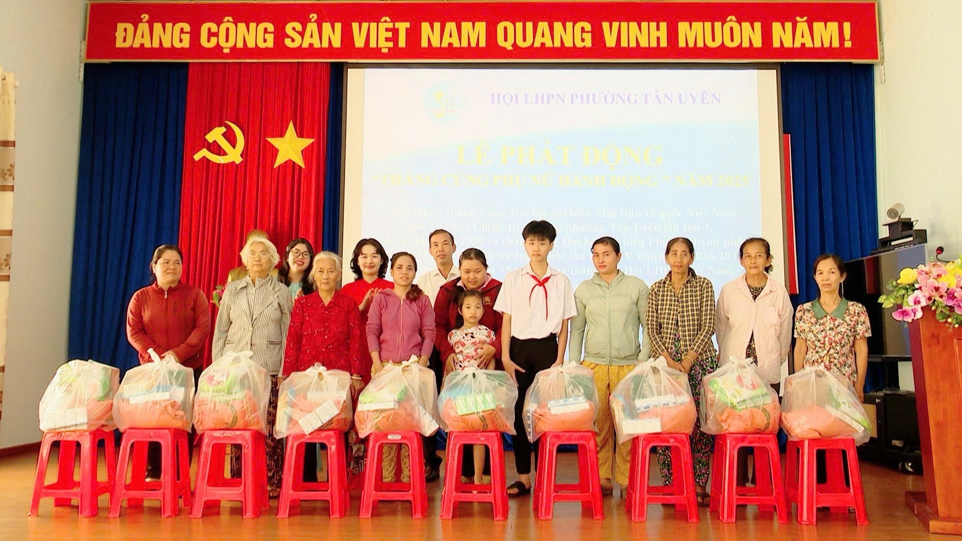 Sáng ngày 20/10, Hội Liên hiệp Phụ nữ phường Tân Uyên tổ chức Lễ phát động “Tháng cùng phụ nữ hành động” năm 2025. Đây là hoạt động ý nghĩa chào mừng thành công Đại hội đại biểu Uỷ ban Mặt trận Tổ quốc Việt Nam, các tổ chức chính trị - xã hội phường Tân Uyên lần thứ I, nhiệm kỳ 2025 - 2030; chào mừng Đại hội đại biểu Phụ nữ thành phố và Đại hội đại biểu Phụ nữ toàn quốc lần thứ XIV, nhiệm kỳ 2026 - 2031; chào mừng kỷ niệm 95 năm Ngày thành lập Hội Liên hiệp Phụ nữ Việt Nam (20/10/1930 - 20/10/2025) và 15 năm ngày Phụ nữ Việt Nam.